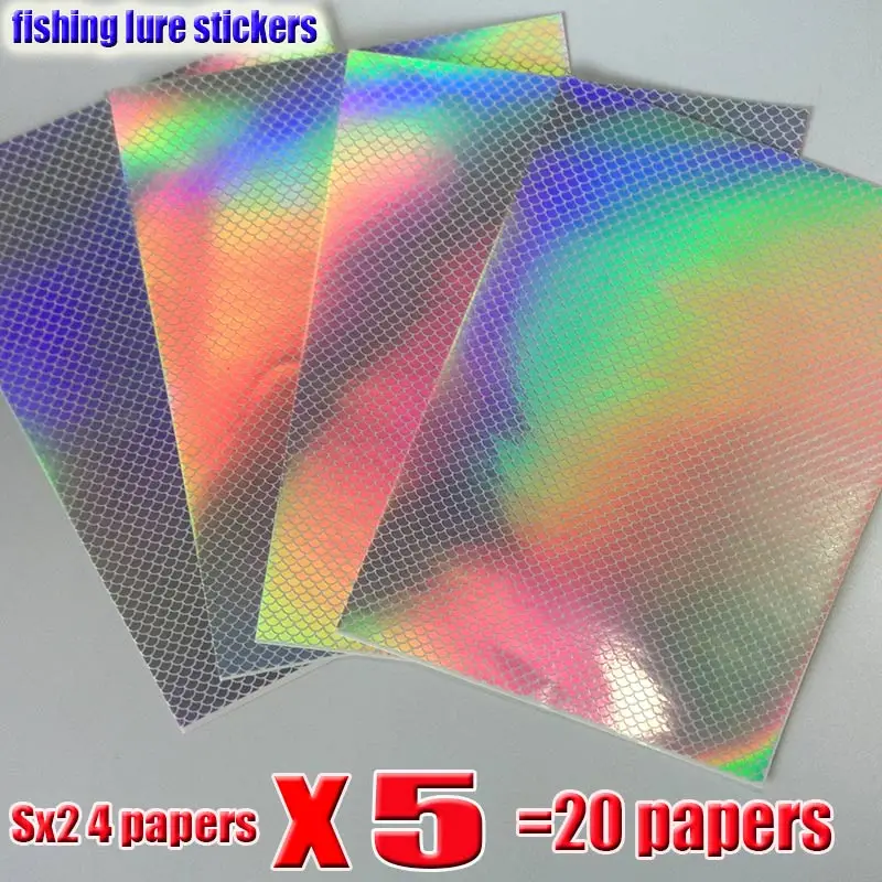 2025 pegatinas de señuelo de piel señuelo pegatina de cebo duro holográfica muchos tipos más 20 papeles/lote haciendo materiales DIY