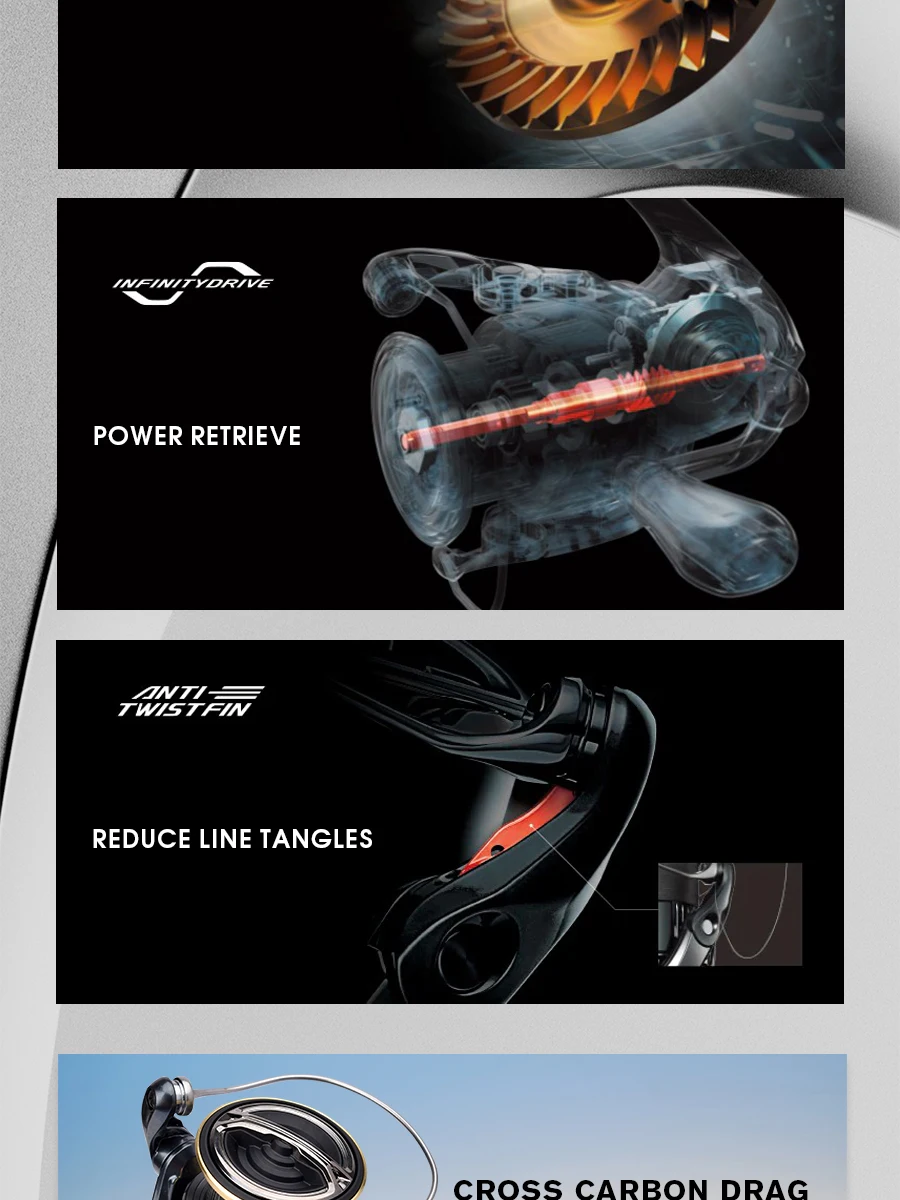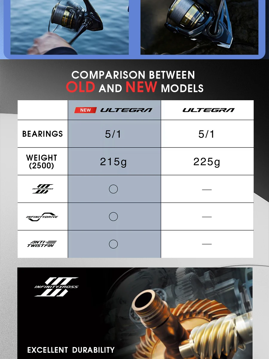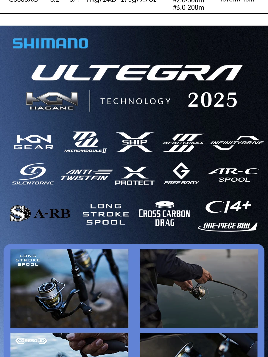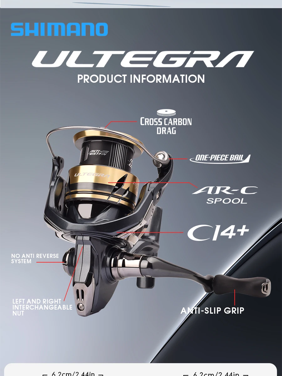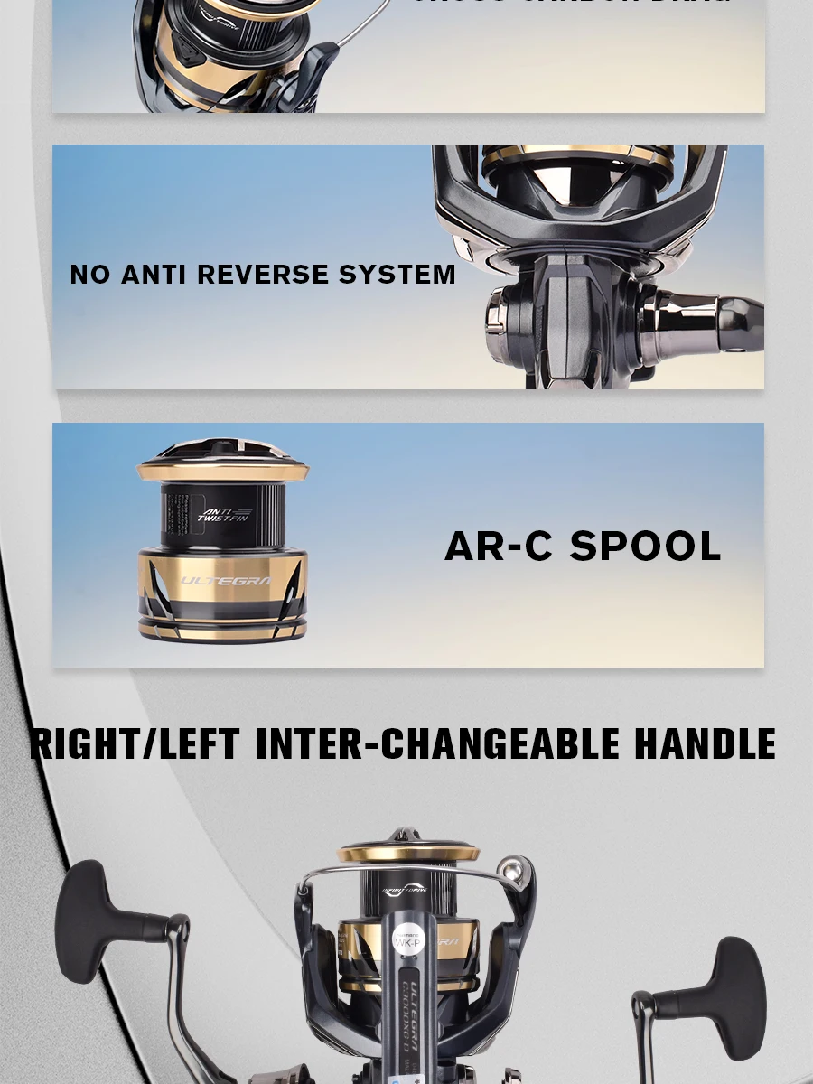 The new Ultegra Series spinning reels include a HAGANE Gear for incredible durability, X-Ship technology for increased smoothness and efficiency, Aero Wrap Oscillation for perfect line winding and longer casting, and Coreprotect for water resistance without a heavy rotation feeling. To the fisherman, these features work together to create a reel that responds quickly and positively in a wide variety of fishing situations.