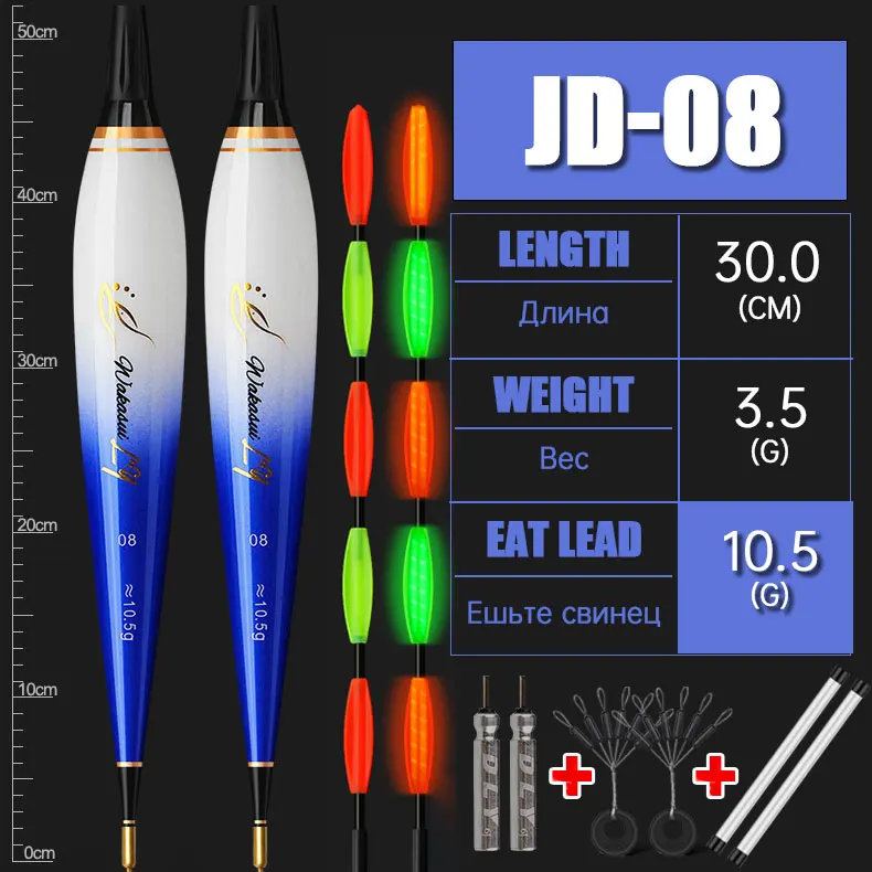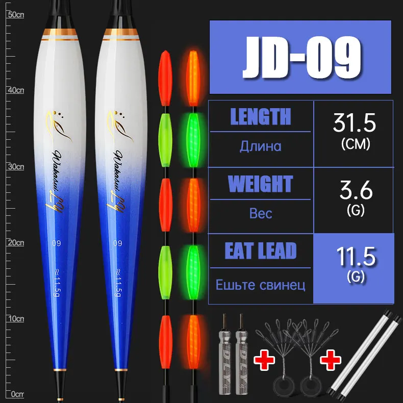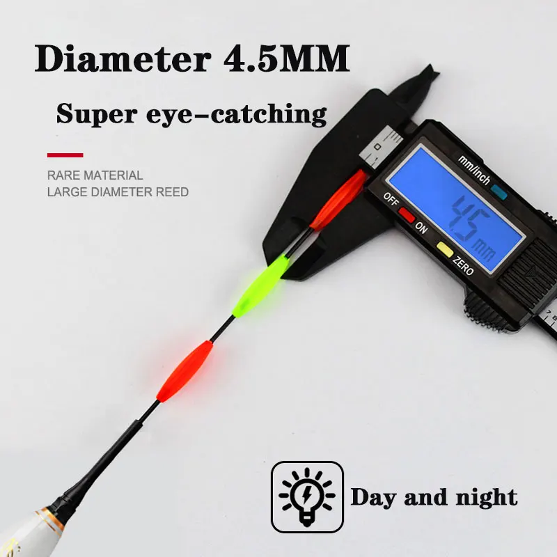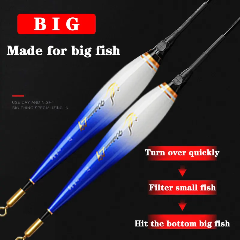Conseguí pescar un pez de 62 cm y 3.9 kg usando este flotador. Es brillante y muy visible. Creo que el cuerpo de plástico es más duradero que el de madera.