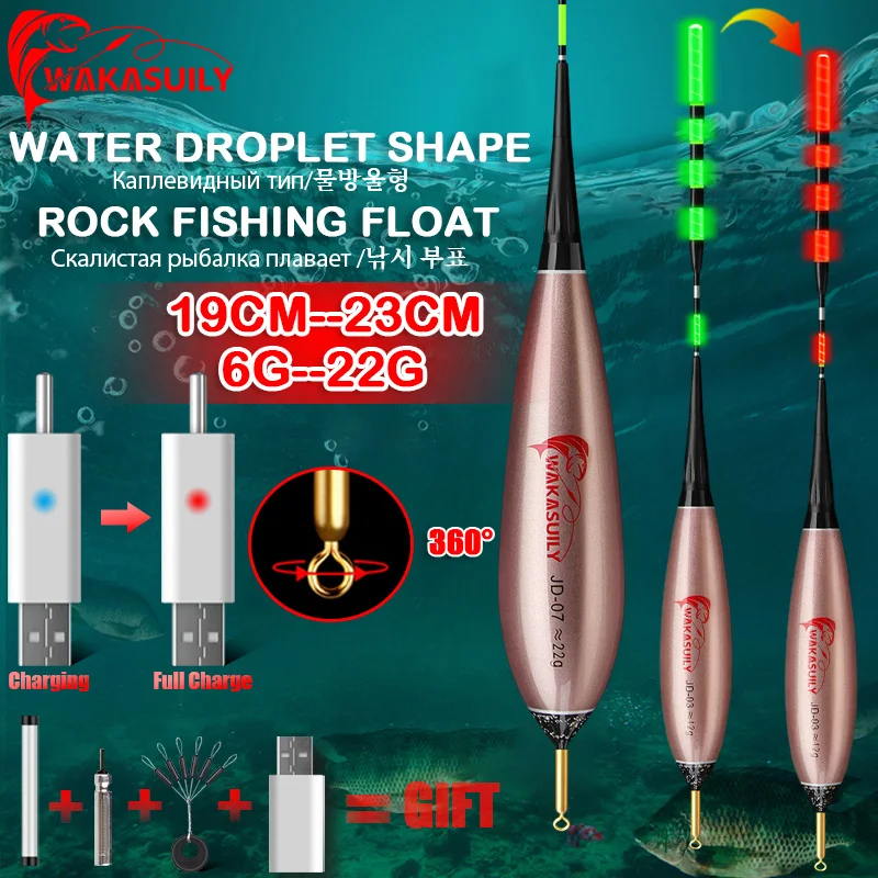 2025Nuevo producto Pesca en roca flotador de pesca electrónico luz nocturna LED versión corta detección de gravedad de 5 malla con juego de carga USB