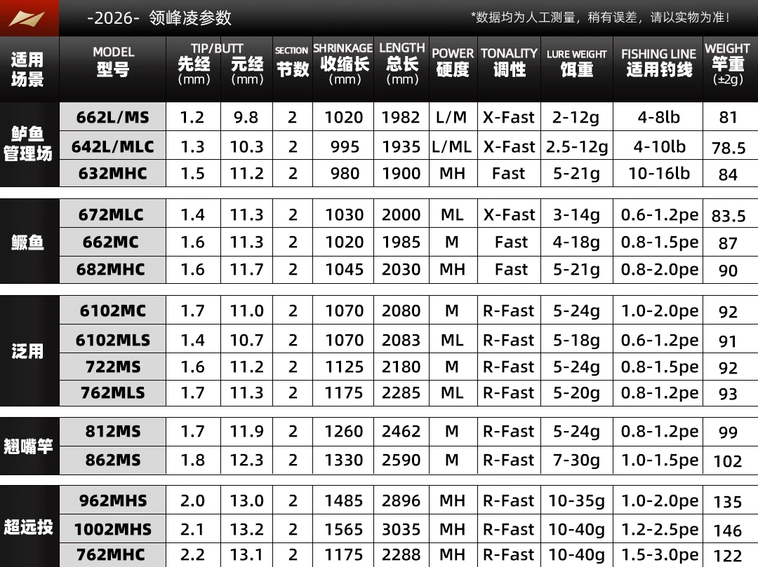2026 LURELEADER VIGOROUS Spinning//Baitcasting caña de pescar 2S longitud 1,9-3,4 M fibra de carbono X/R rápido