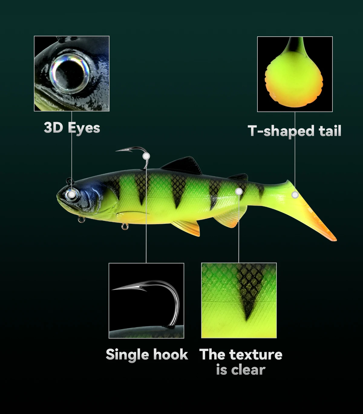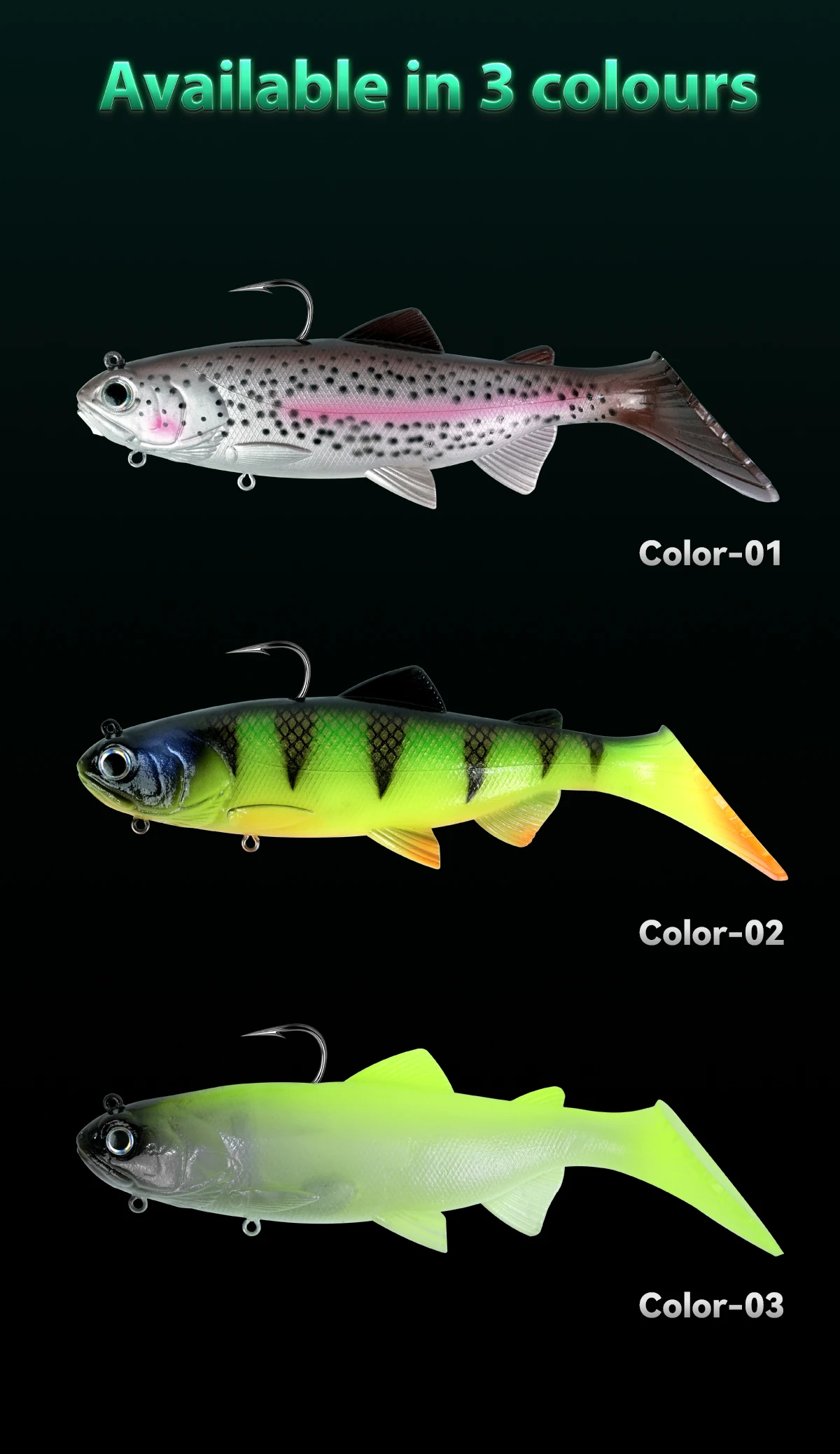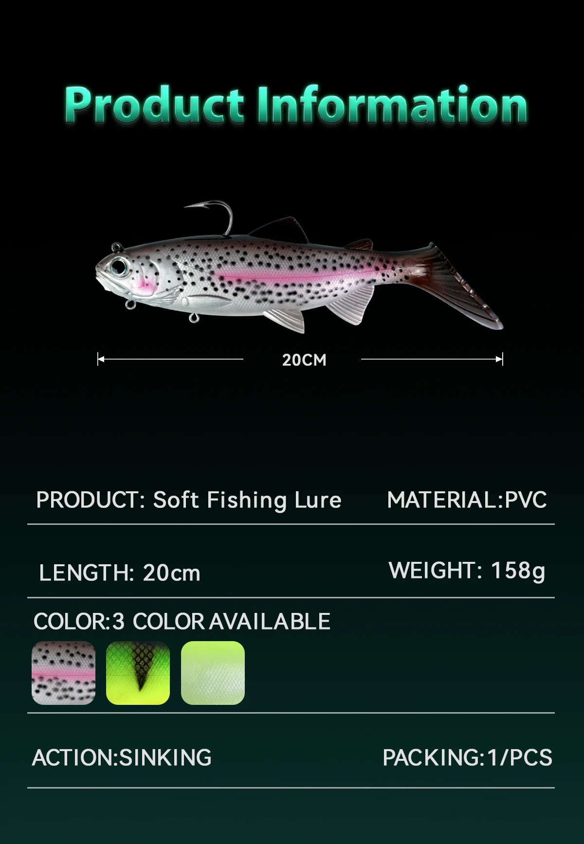Cebo de pesca suave de PVC con cabeza de plomo de 20cm y 158g, cebos artificiales para nadar, cola en T, señuelo suave de silicona, Wobblers de Swimbait con gancho