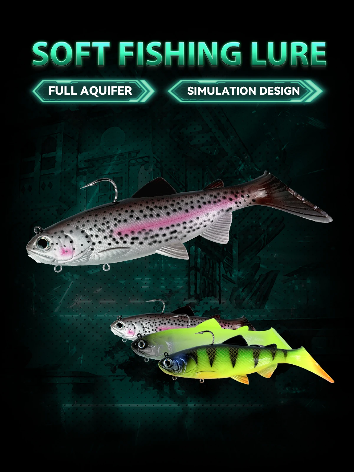 20cm 158g cabeza de plomo PVC cebo de pesca suave natación cebos artificiales cola en T señuelo suave de silicona Swimbait Wobblers con gancho