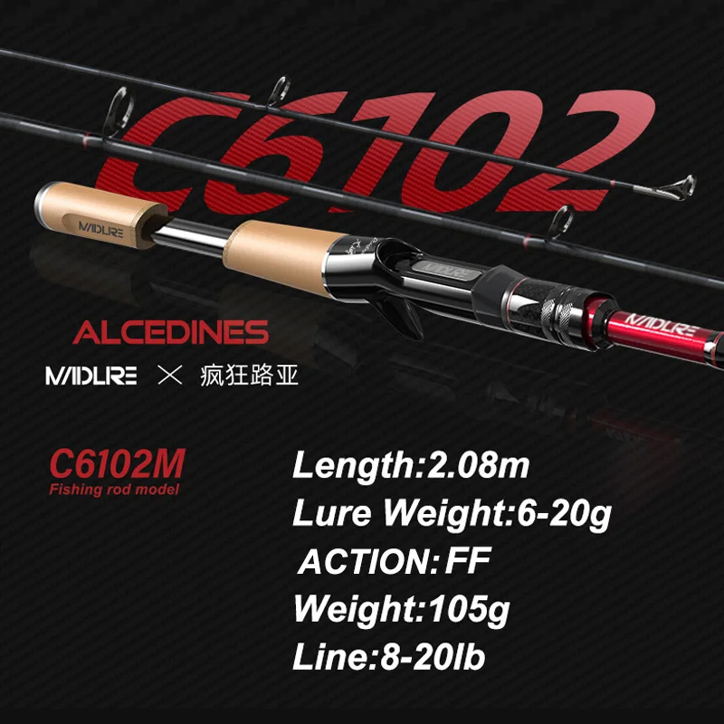 21 cañas de pescar ALC, caña de fundición giratoria de 2 secciones, Fuji SIC + un anillo, TORAY de carbono completo, ligero