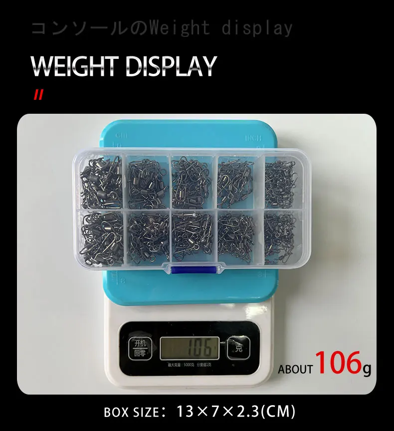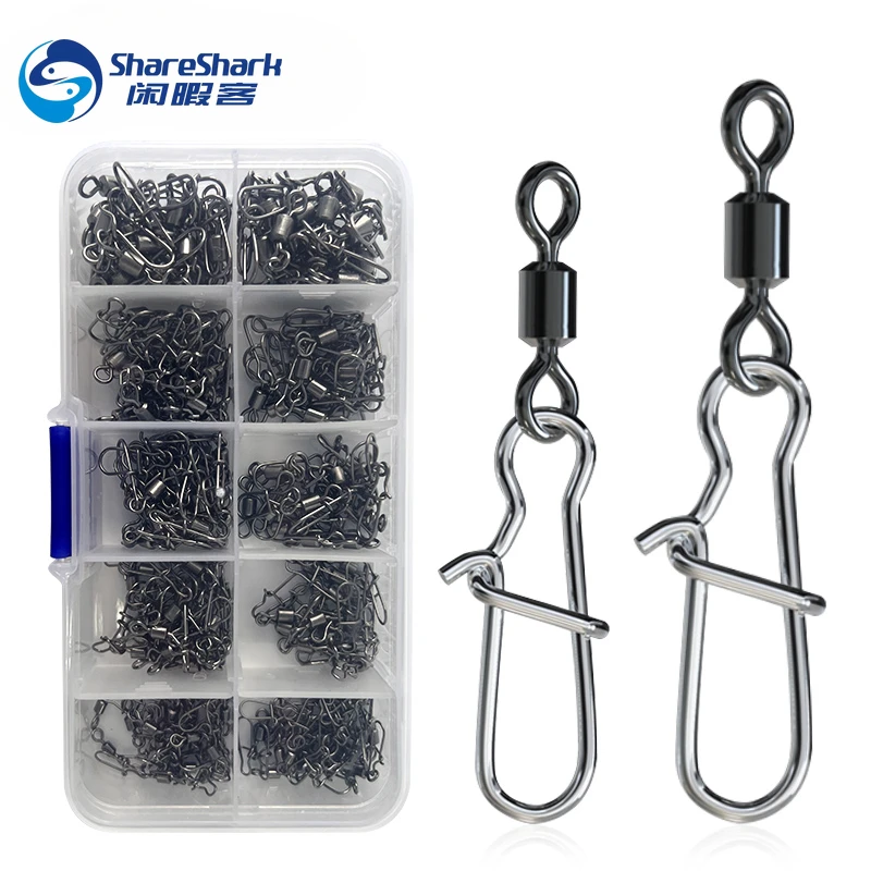 210 unids/caja giratorios de barril de pesca con doble bloqueo de acero inoxidable conector giratorio a presión aparejos de pesca