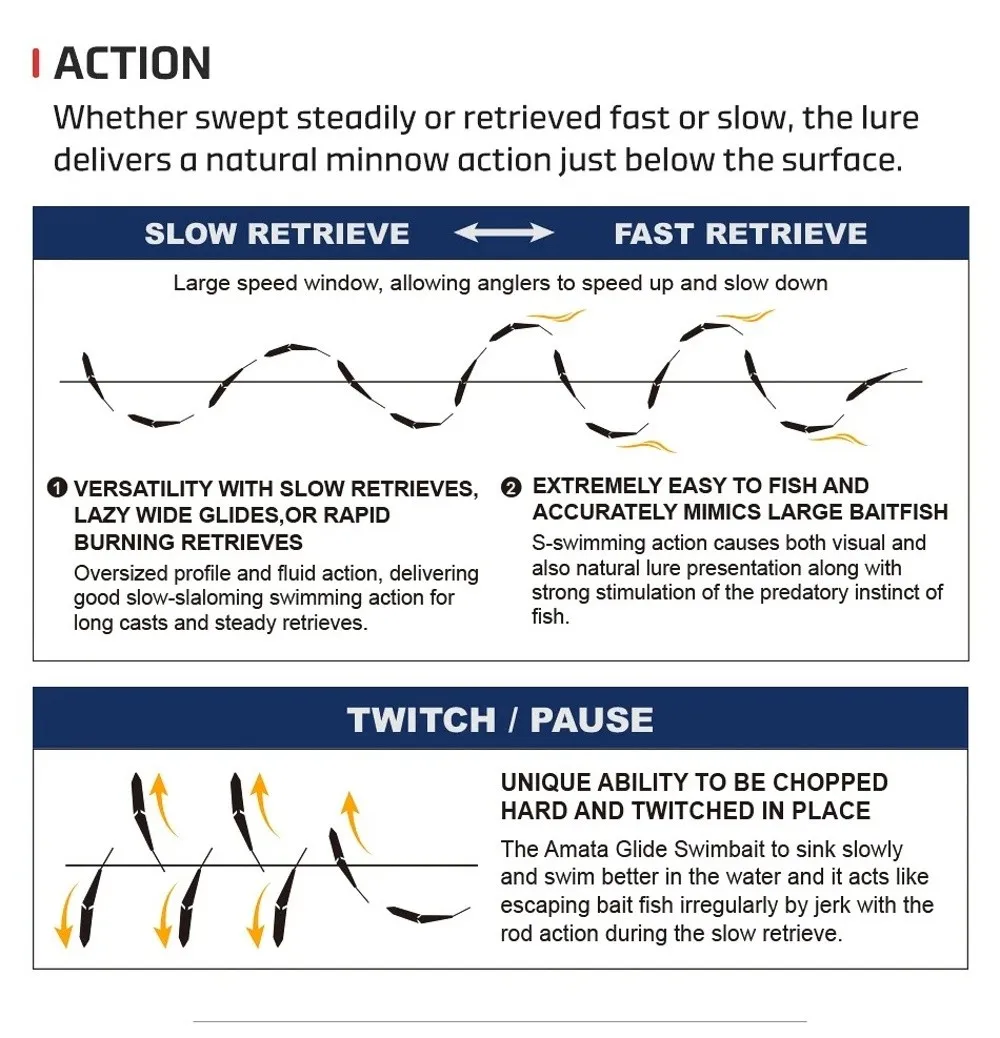 Articulación en forma de V: crea una amplia acción de deslizamiento, imitando con precisión el movimiento natural de un pez cebo.