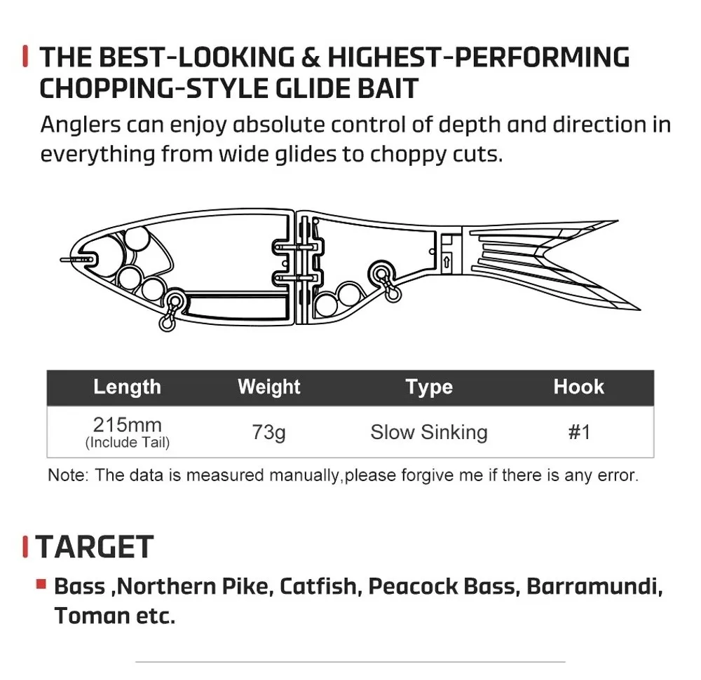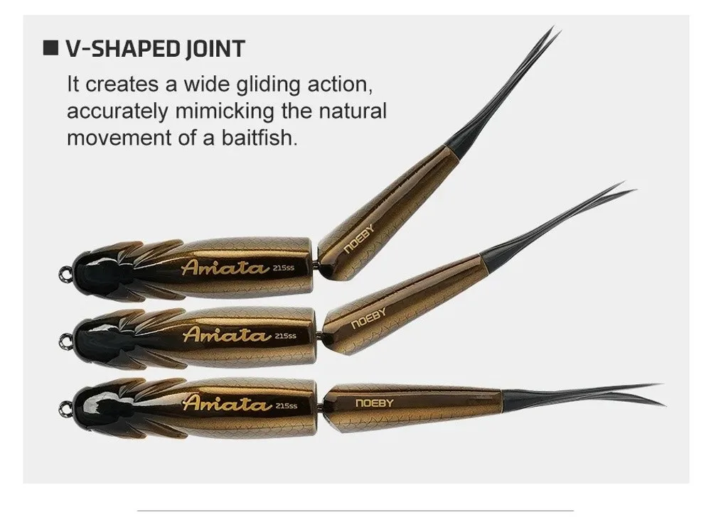 V-shaped joint:It creates a wide gliding action, accurately mimicking the natural movement of a baitfish.