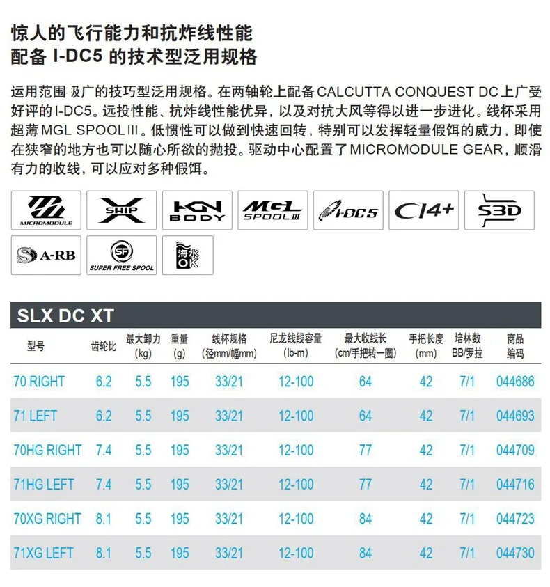 22 SHIMANO SLX DC XT carrete de pesca Baitcasting 7 + 1BB arrastre 5,5 KG carretes de fundición de agua salada