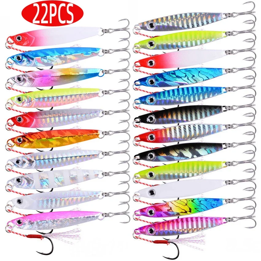22 Uds. Juego de señuelos de pesca con cuchara de plantilla fundida de Metal 7g 10g 17g 21g 28g 30g 40g aparejos de Señuelos de Pesca de lubina de fundición