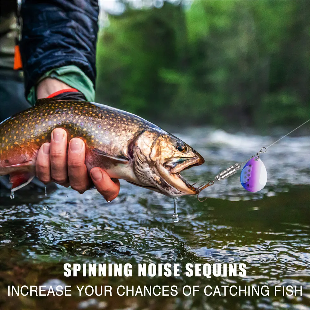 1.Cuchillas giratorias hechas de metal duradero.Recubierto de laca para mayor durabilidad y brillo.Material duradero para pesca larga.