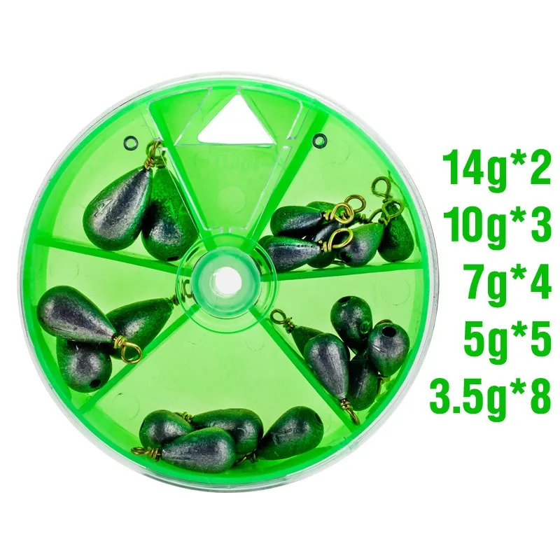22 unids/caja pesas de pesca plomos de pesca en forma de lágrima plomo de pesca Bass Casting Drop Shot pesas para agua salada agua dulce