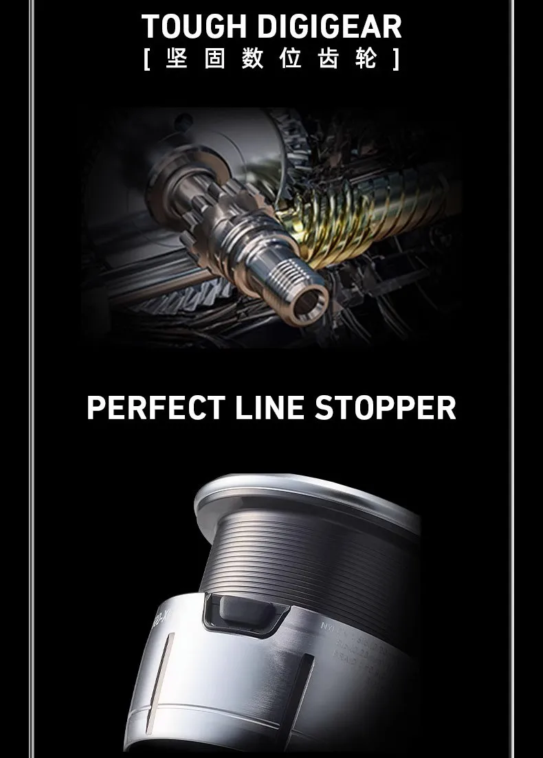 El engranaje impulsor, que es el corazón del carrete, está equipado con un equipo digital resistente.