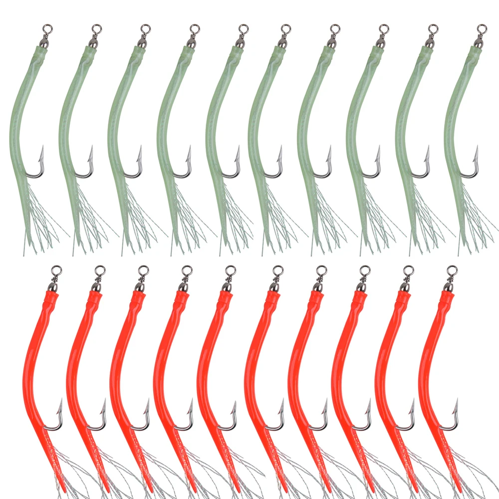 2.Señuelos de tubo con anzuelo de pesca de agua salada de acero inoxidable, resistentes y que garantizan una durabilidad duradera, el anzuelo afilado y el diseño de púas pueden aumentar la posibilidad de captura.