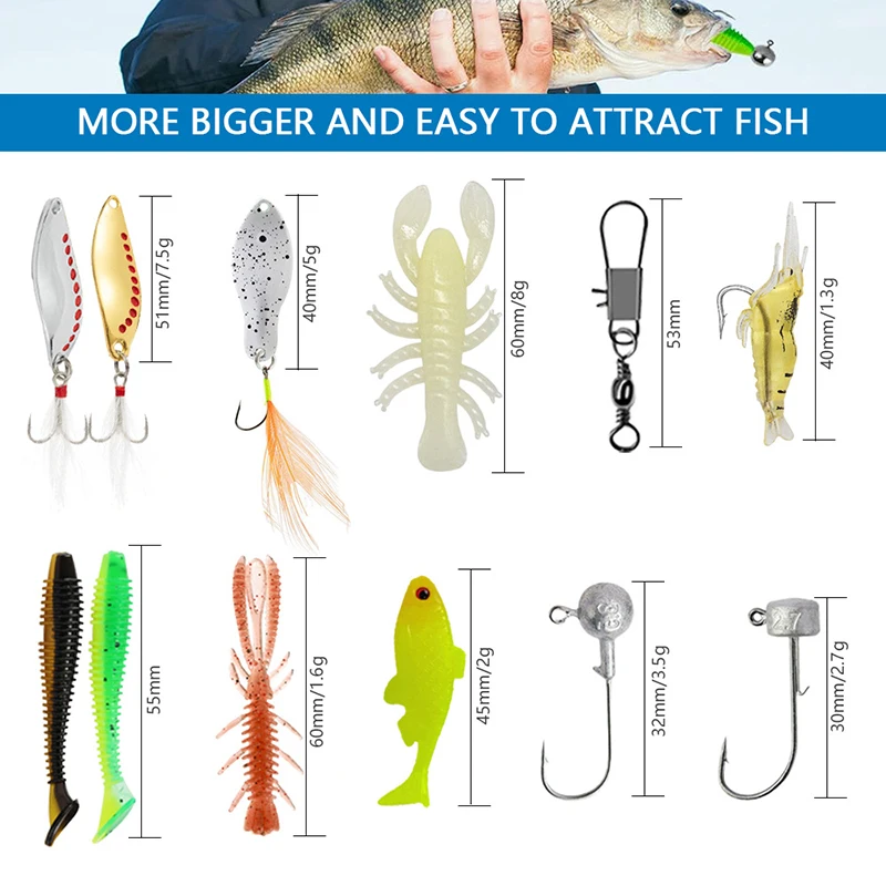 El kit incluye opciones de cebo blando y duro,