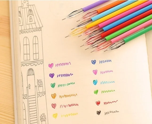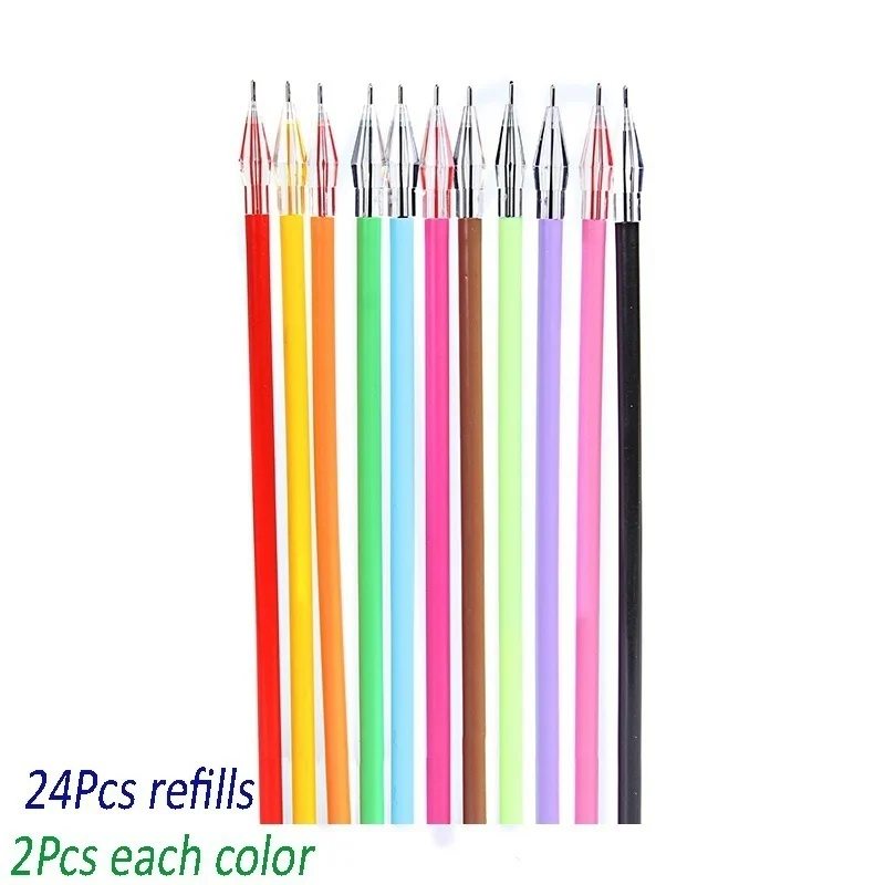 24 Uds. Recambios coloridos con cabeza de diamante, recambios creativos de bolígrafo de Gel de 12 colores, 0,38mm, papelería de oficina, suministros escolares
