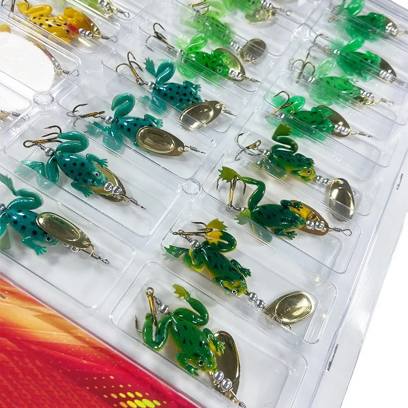 24 Uds. Señuelos de pesca de rana suave, cebo de silicona, anzuelos triples artificiales, cebos de señuelo suave de agua superior, aparejos de pesca