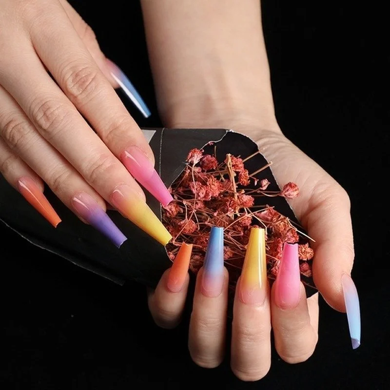 Características: 1. Fácil de usar, decoración perfecta y larga duración hacen que tus uñas se vean mucho más glamurosas y hermosas 2. Diseña tus propias uñas para bodas, fiestas o citas de fin de semana, elección perfecta para tu moda de uñas 3. Un regalo maravilloso para ti o tu amiga 4. Seguridad en sus uñas naturales, no tóxico, Protección del Medio Ambiente, no lastime la mano. Tropiezos de uñas postizas sin el peligroso proceso químico 5. Perfecto para bodas, bailes, citas, también son adecuados para Halloween, Día de San Valentín y otros festivales. 6. Diseño de uñas completo, longitud práctica, hace que tus uñas sean delgadas y tiene un aspecto muy realista o al menos profesional 7. Hermoso, simple, ambiente, adecuado para todo tipo de ocupaciones Color: se muestra en la imagen (arcoíris) Forma: Bailarina larga Tamaño: tamaño completo Material: acrílico Embalaje: 24 piezas/bolsa Paquete incluido: 1 bolsa. Nota: 1. Por favor, permita un error de 1-3 cm debido a la medición manual. Gracias por su comprensión. 2. Debido a las diferentes pantallas y luces, es posible que la imagen no refleje el color real del artículo. Gracias por su comprensión.