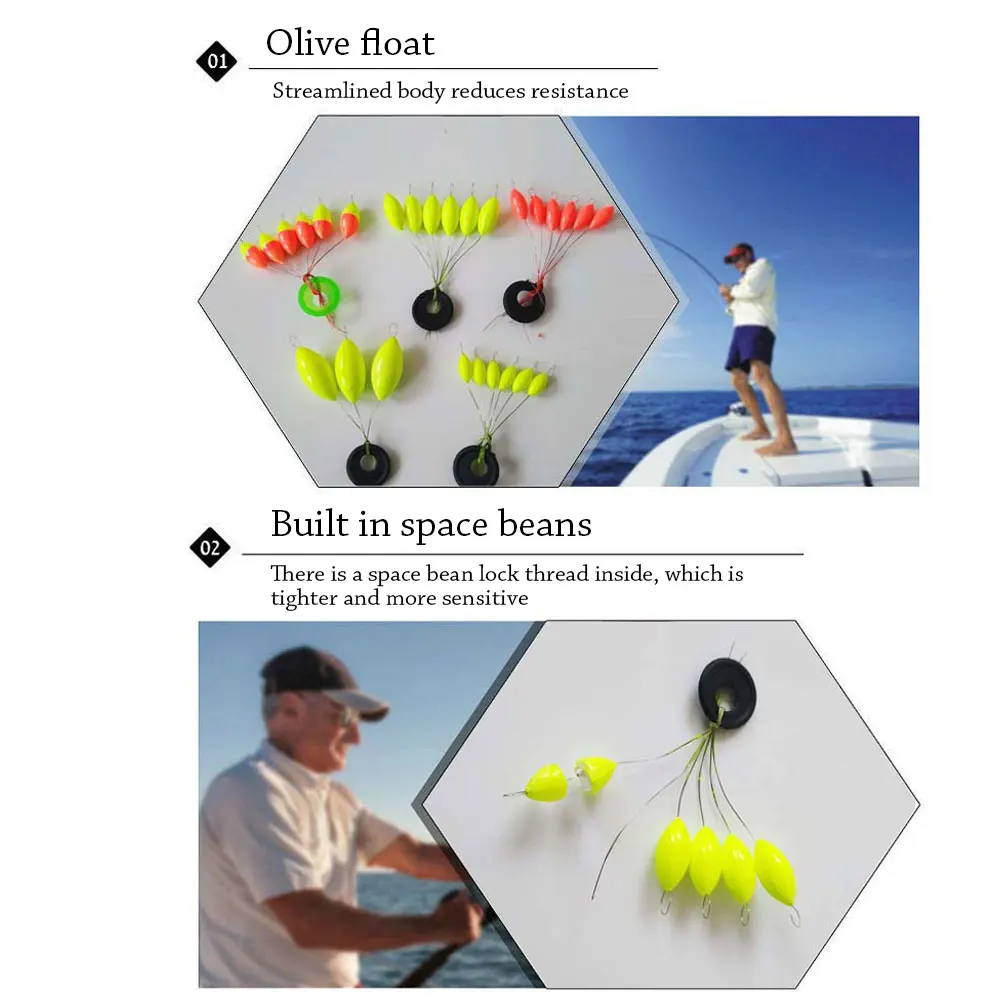 Aplicar a: accesorios de hilo de pescar, flotador de pez gato, regalo, etc. El paquete incluye: 240 piezas (40 paquetes) tapón de frijoles