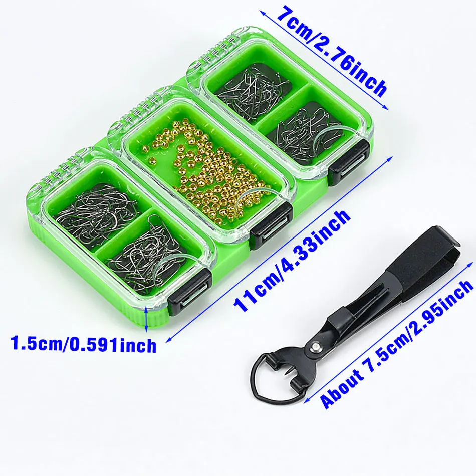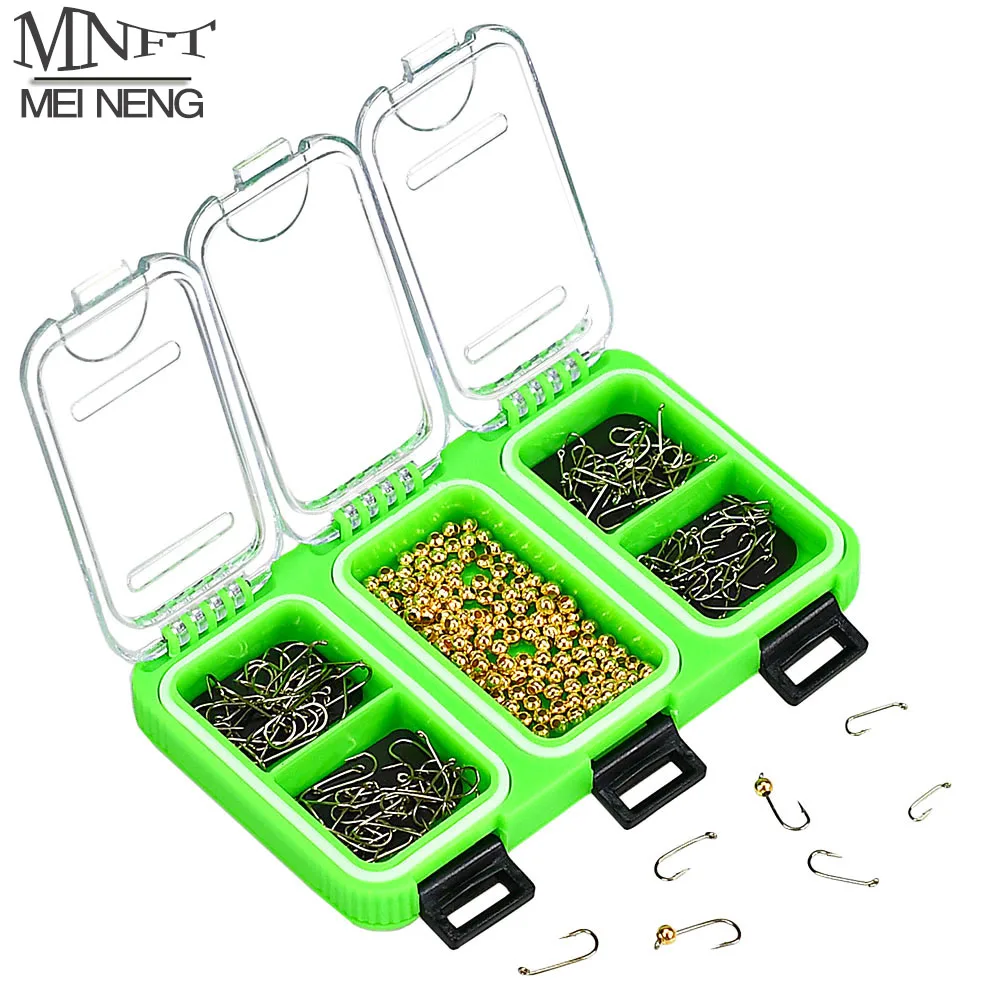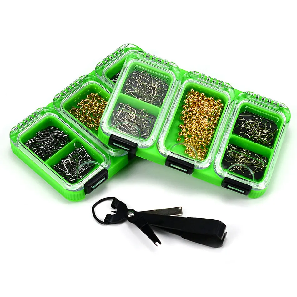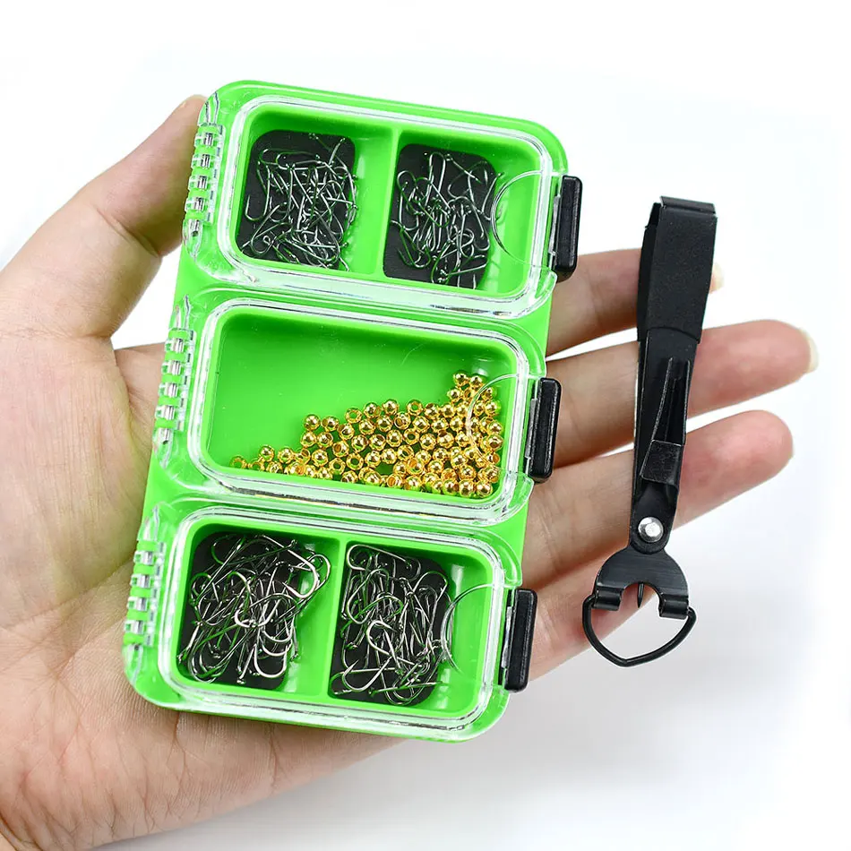 241 unids/set pesca mosca atado anzuelos de púas tamaño 12 # 14 # 16 # 18 # , Material de encuadernación de cuentas de cabeza dorada y herramienta de tijeras de pesca voladora