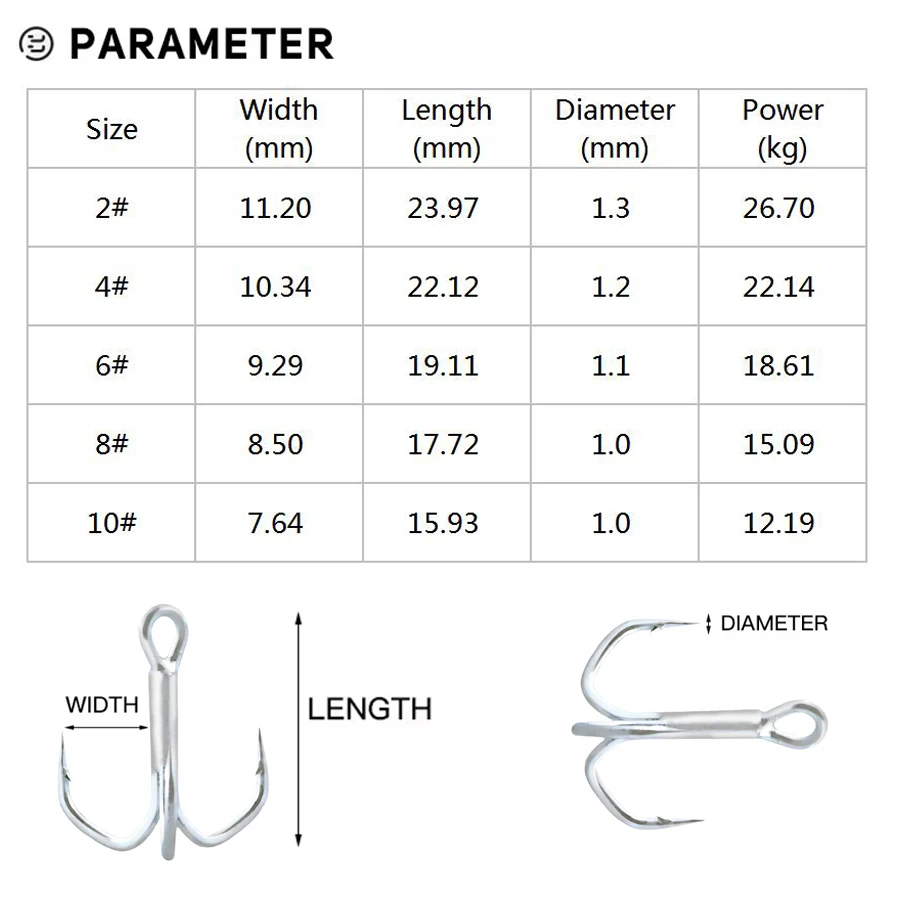 Tipo: 3x fuertes anzuelos triples de níquel plateado