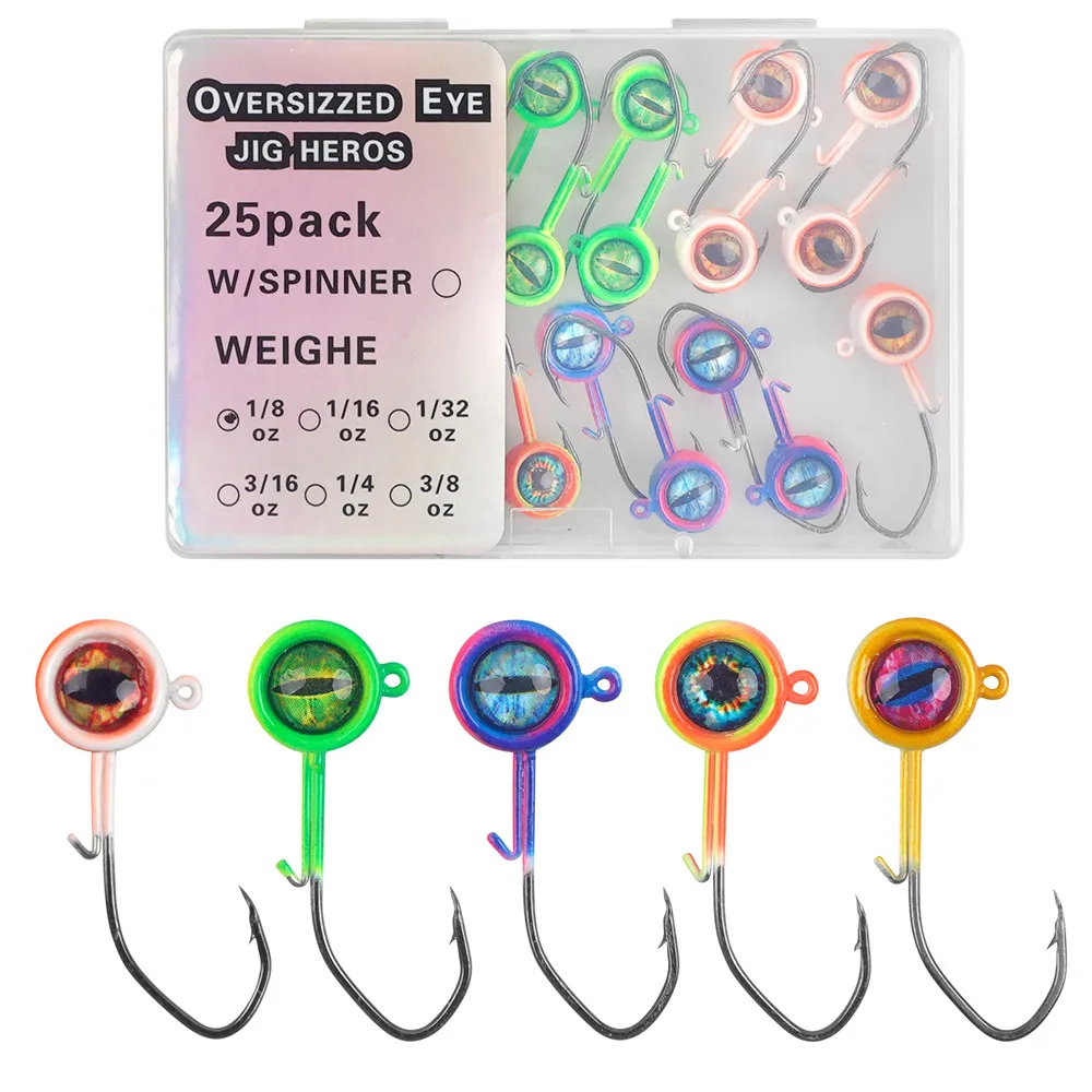 3.Jig Heads con grandes ojos 3D y colores brillantes y vibrantes, acción de natación vívida, hacen que sus señuelos sean reales en el agua y atraigan mejor sus peces.Gran regalo para Halloween y Navidad.
