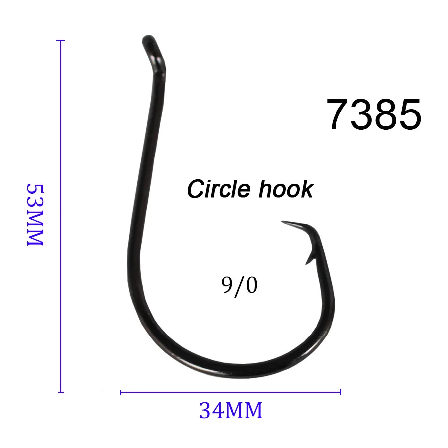 25 uds 7385 anzuelos de pesca serie pulpo anzuelo de acero al carbono de un solo círculo 2x anzuelos de carpa con púas fuertes 9/0