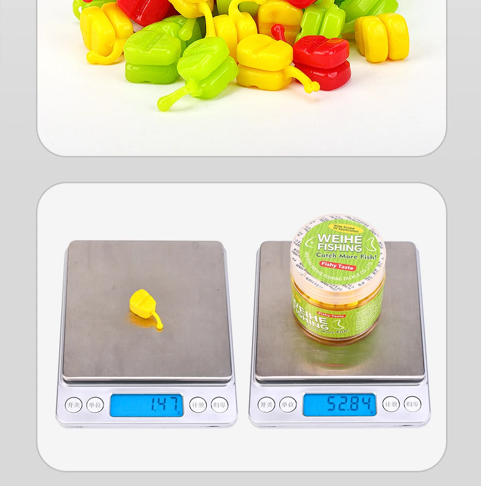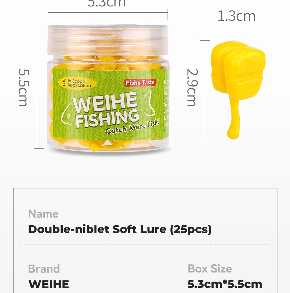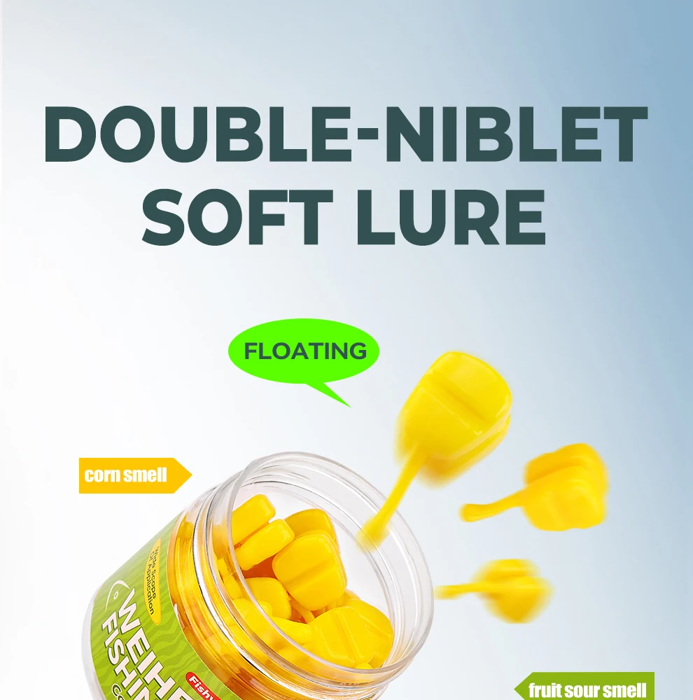 25 uds doble maíz TPE Material Luya flotante tipo agua cebo suave multisabor