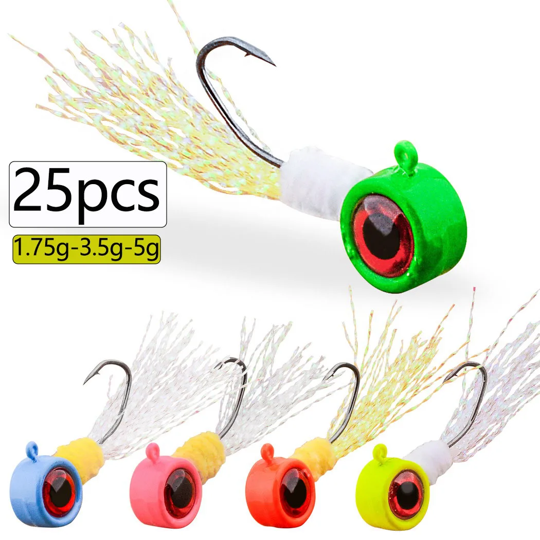 25 uds pesca tipo de pez Jig Head Marabú pluma Jig Head gancho señuelo bola redonda para lubina trucha Walleye Panfish Bluegill 1,75g-5g