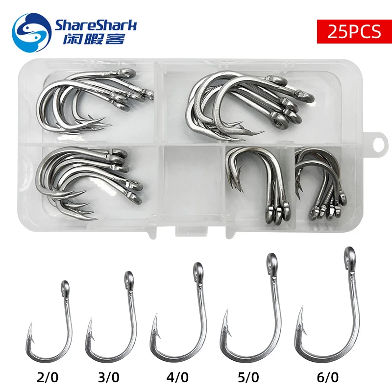 Juego de anzuelos de gusano para pesca de lubina, 25 uds., anzuelos de cebo de gusano offset de acero rico en carbono, anzuelos Jig para aparejos de pesca de trucha y agua salada