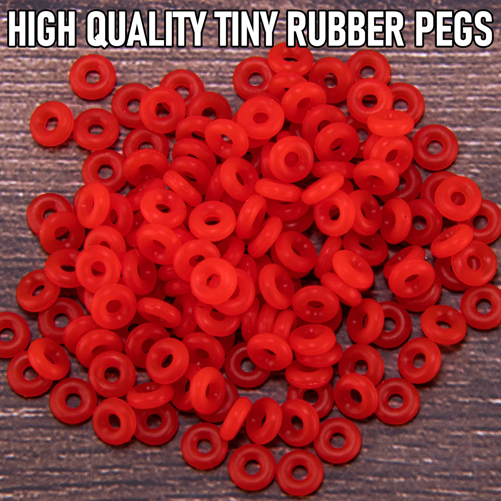 250 rubberen pinnen, 7 kleuren waaruit u kunt kiezen. Twee maten: maat 1: 5 mm buitendiameter, 1 mm ID. Maat 2: 6 mm buitendiameter, 2 mm ID.