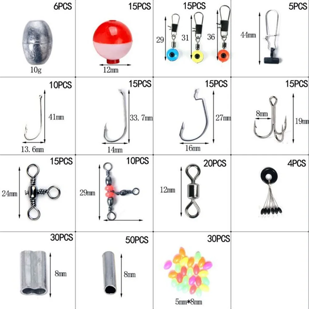 255 unids/caja Kit de aparejos de pesca que incluyen mangas antienredos gancho deja cuentas Boilie cebo tornillo giratorio broches Accesorios