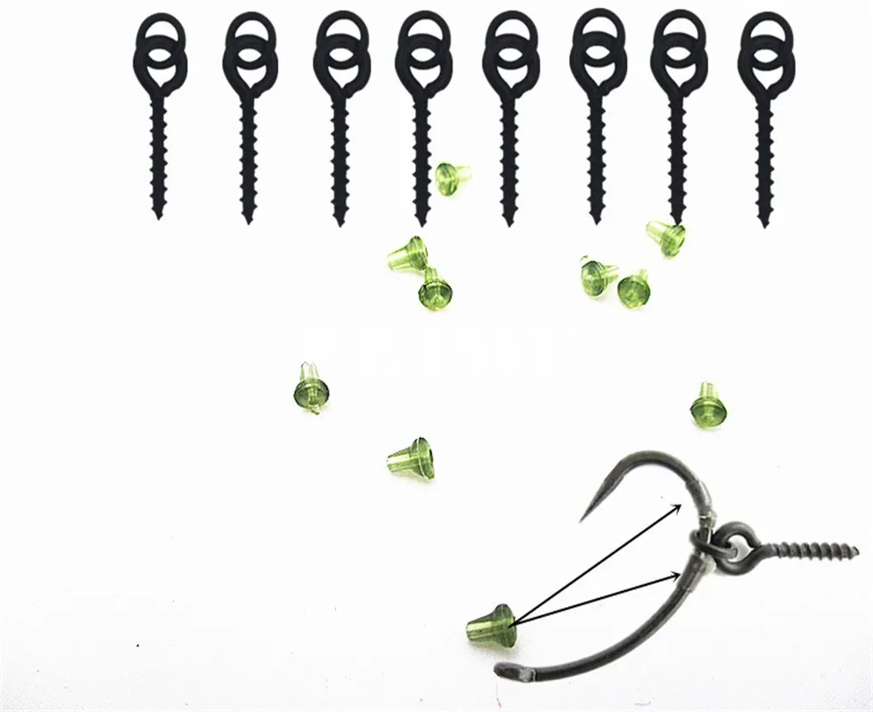 25xbait Screws y 50x Hook Stopper Beads, Terminal de pesca de carpa, soporte de cebo, aparejos para el cabello, gancho giratorio Pop Up