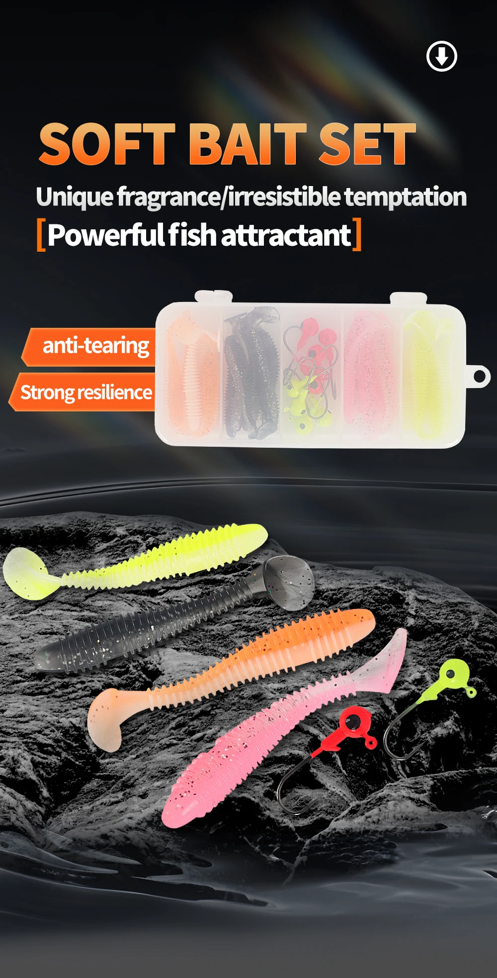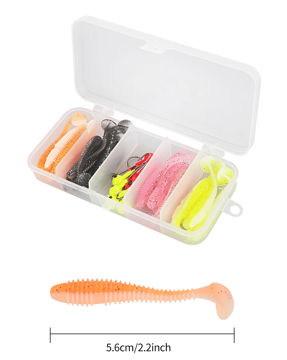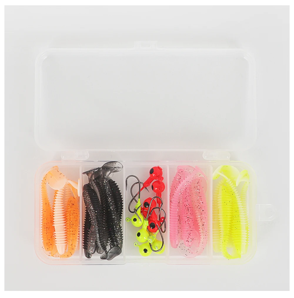 28 unids/caja señuelo en caja cebo suave perca Warbler cebo para peces anzuelo con cabeza de anzuelo 3,2 cm anzuelos de Pesca con caja de aparejos de Pesca