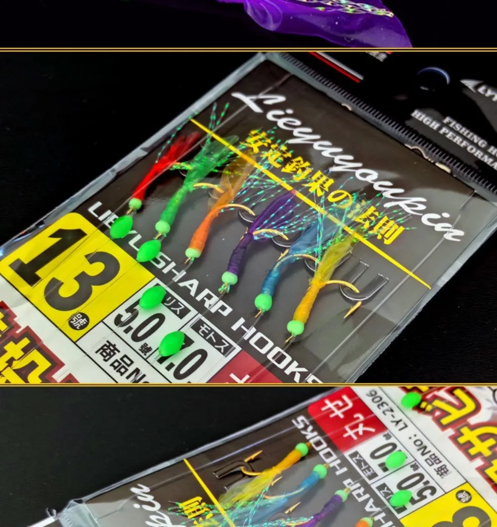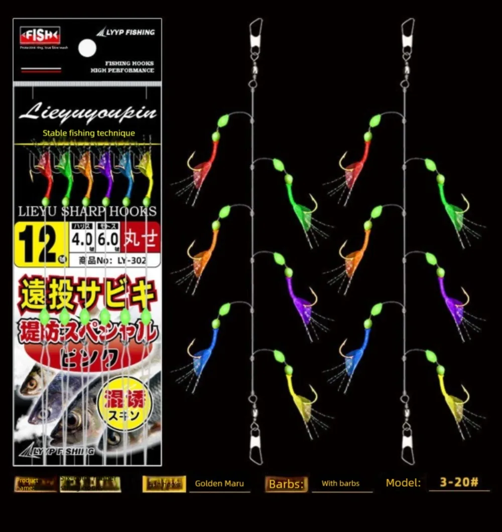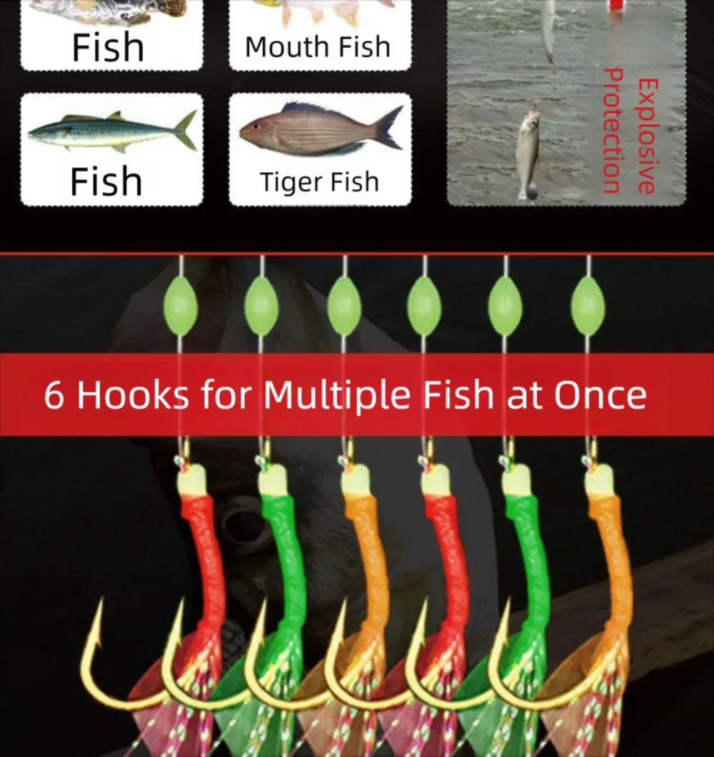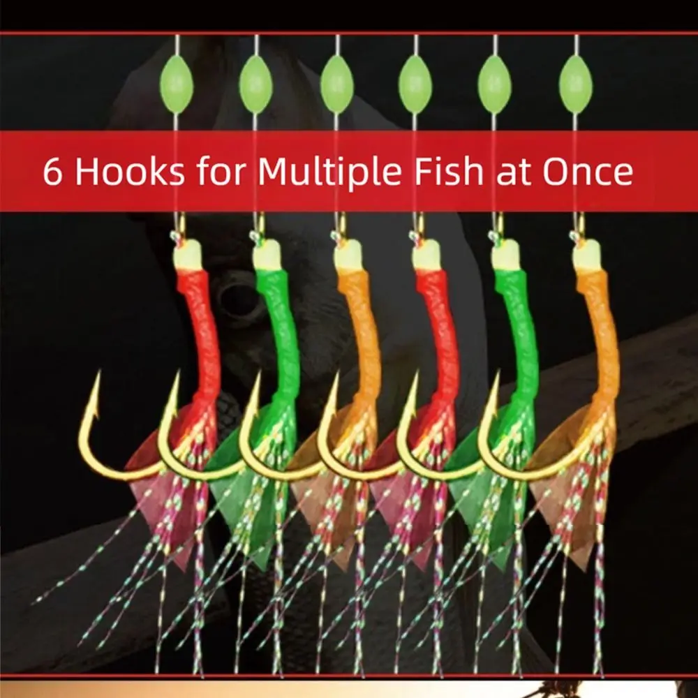 3. Luminous Bean Lure Bait: Each hook on the rig is adorned with a luminous bean lure bait. The luminous feature makes the bait highly visible underwater, even in low-light conditions. It effectively attracts fish and enhances your chances of enticing them to bite.