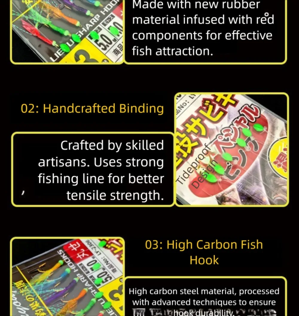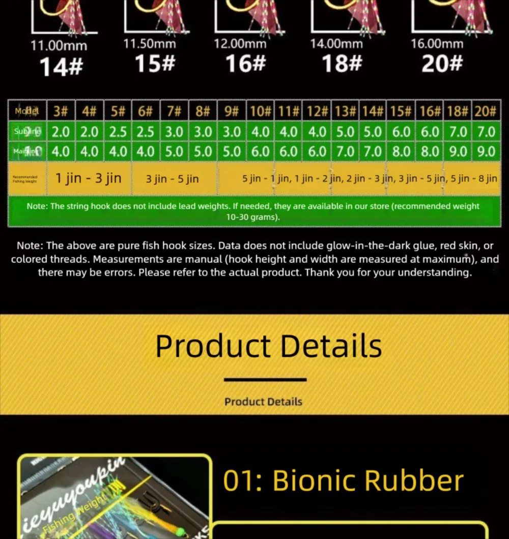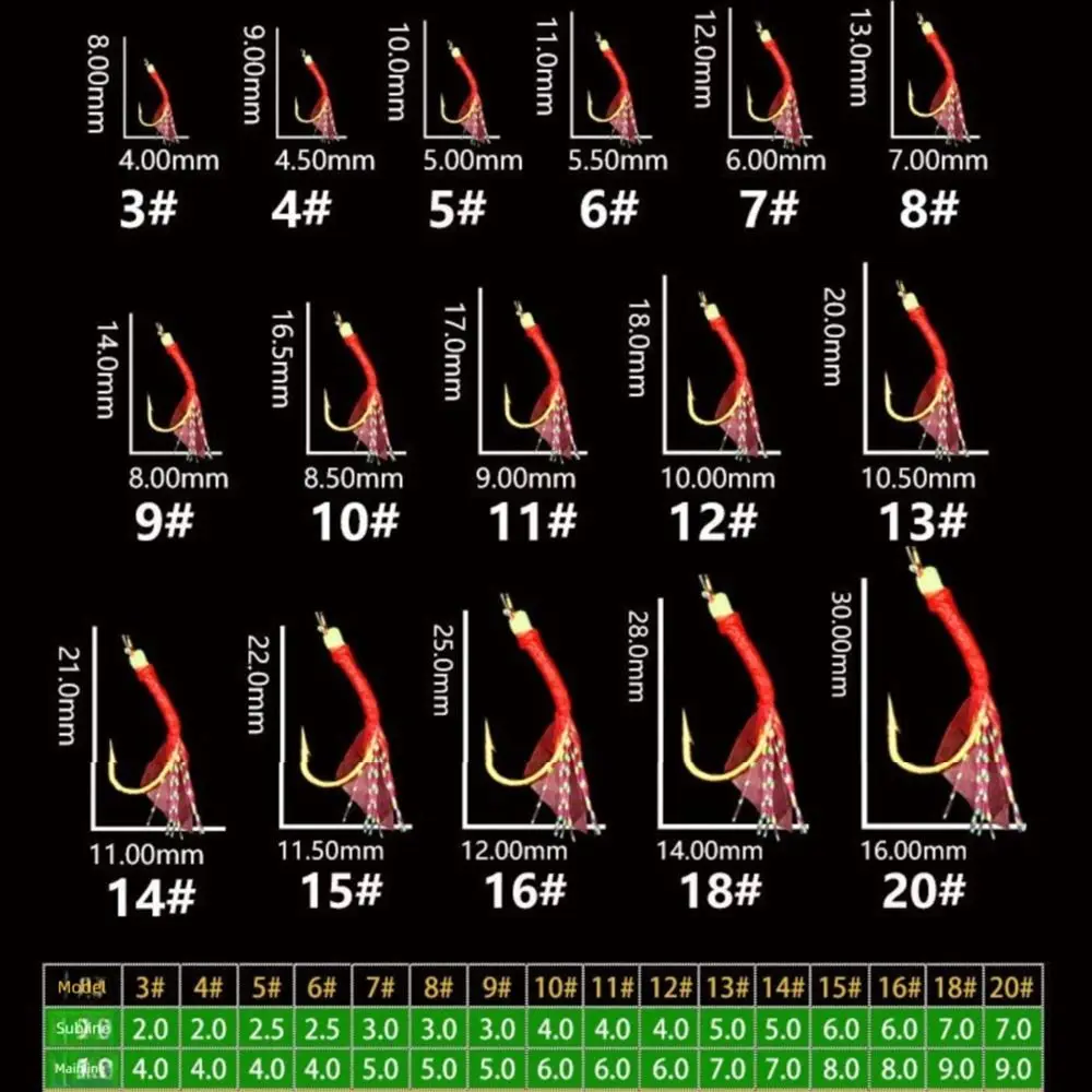 2. 10 Sizes of Rubber Fishing Hooks: This rig comes with 10 different sizes of rubber fishing hooks, providing versatility for various fishing situations. Whether you're targeting small or large fish in sea or freshwater environments, you can choose the appropriate hook size to optimize your fishing success.