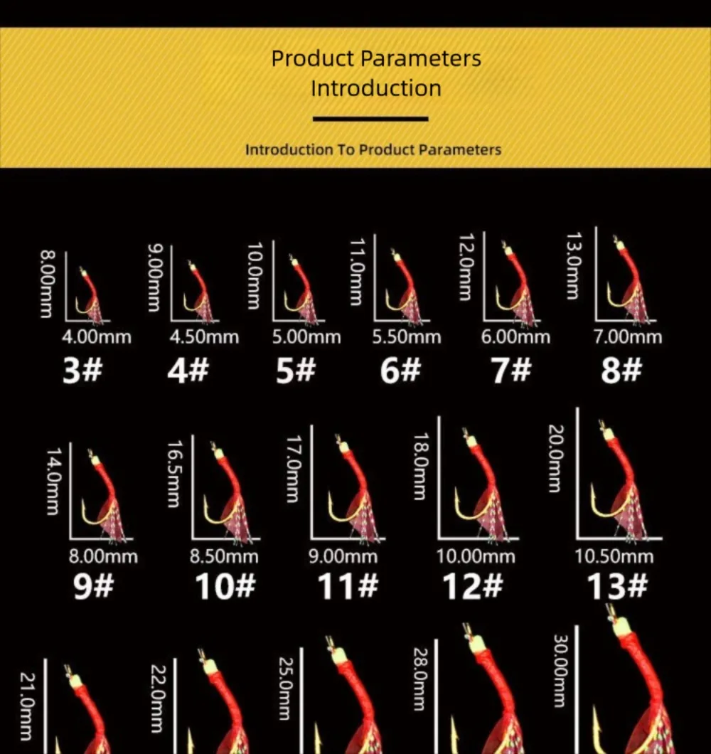 2.10 tamaños de anzuelos de pesca de goma: esta plataforma viene con 10 tamaños diferentes de anzuelos de pesca de goma, lo que brinda versatilidad para diversas situaciones de pesca.Ya sea que esté dirigido a peces pequeños o grandes en ambientes marinos o de agua dulce, puede elegir el tamaño de anzuelo adecuado para optimizar su éxito en la pesca.