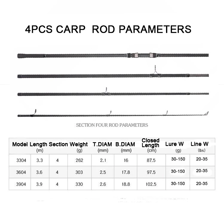 3,3 M 3,6 M 3,9 M 4 piezas caña de pescar de carpa caña de Surf de viaje giratoria 30-150g distancia de carbono lanzamiento de agua dulce y salada
