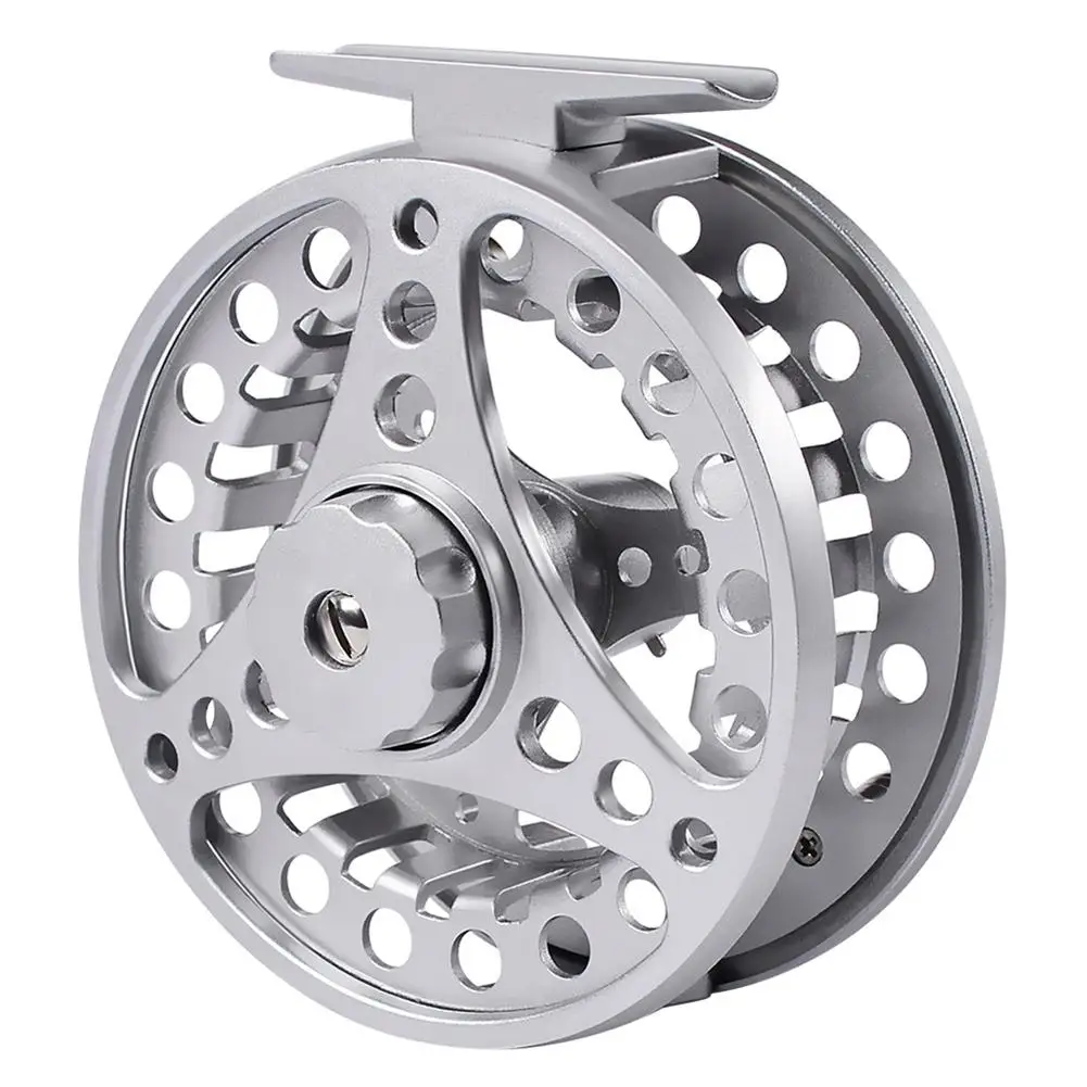 Carrete de pesca con mosca totalmente metálico, estructura simple y hábilmente flexible.