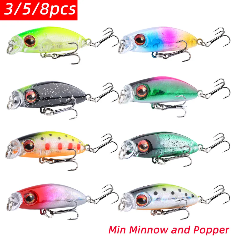 3/5/8 Uds Mini Señuelos de Pesca Minnow hundimiento lento 4,1 cm 2,9g cebo duro de plástico Artificial para pesca de lubina en colores mezclados