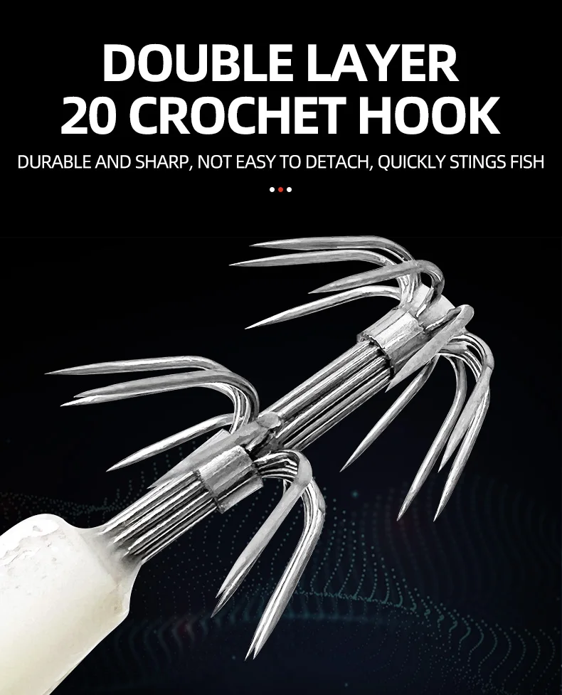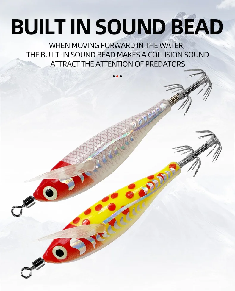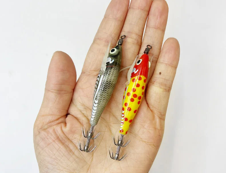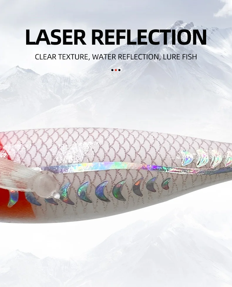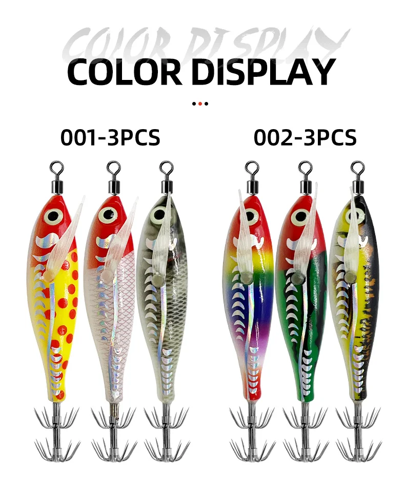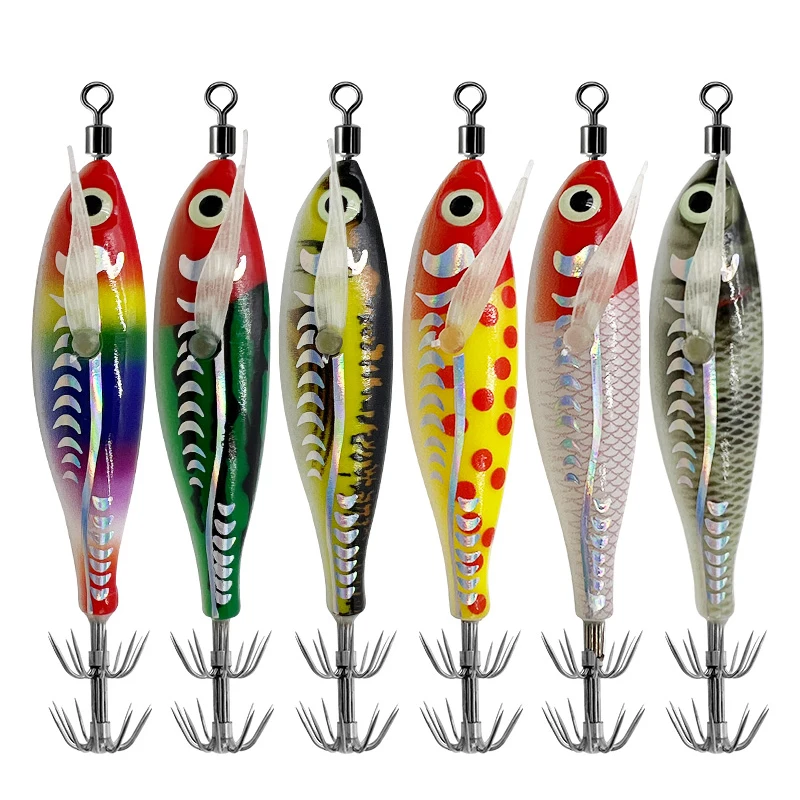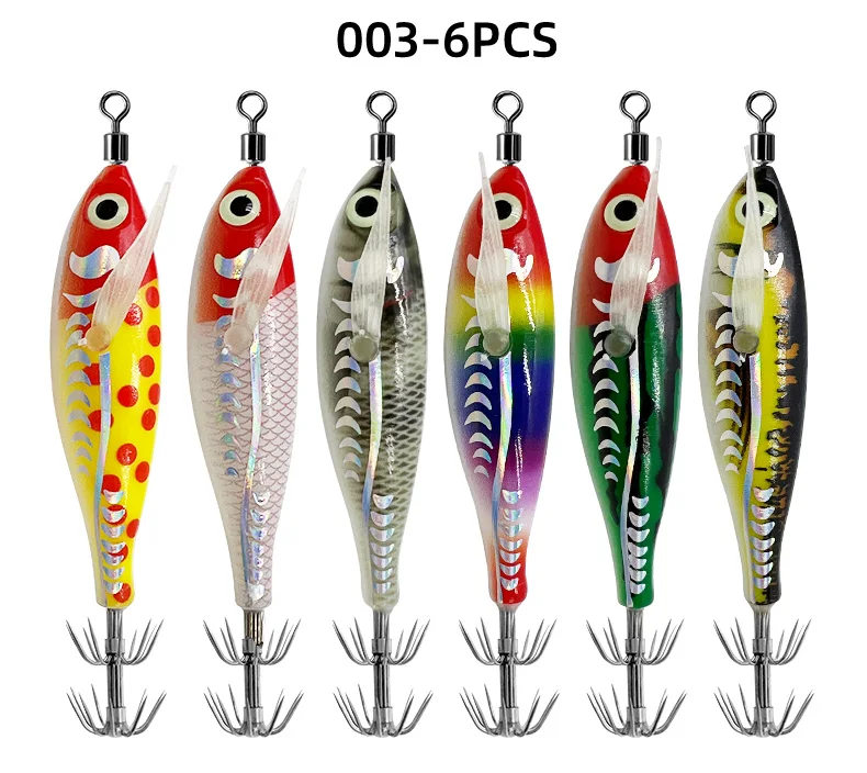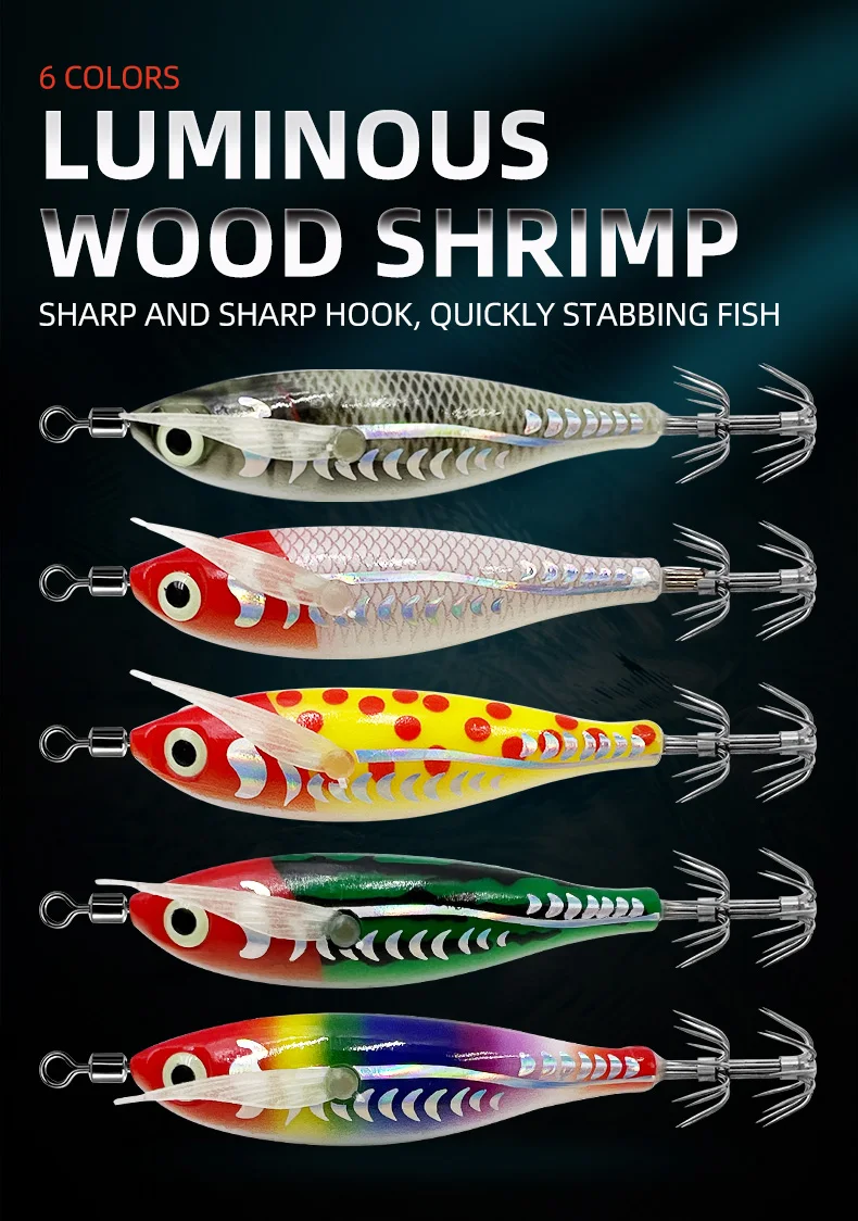3/6 unids/bolsa 3D láser Horizontal camarón calamar gancho que brilla en la oscuridad madera camarones doble paraguas gancho pipa calamar señuelo