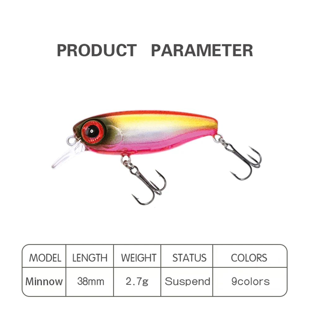 Señuelo de pesca de 3.8cm, 2,7g, Micro Minnow, Mini señuelo Wobbler, suspensión de corrico, Jerkbait, Swimbait, cebo duro Artificial, cebo para trucha