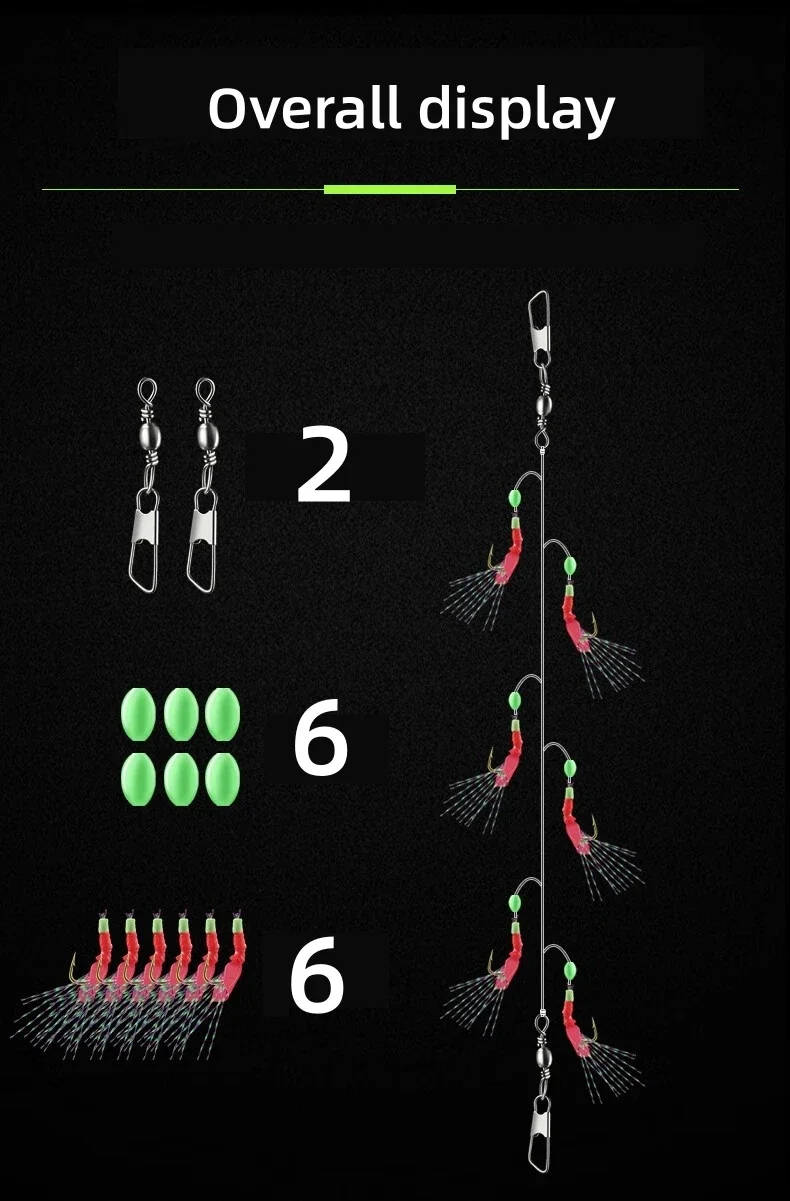 ¡Este producto viene en 6 anzuelos por paquete! El anzuelo tiene piel de Camarón, cuando lo use, no es necesario usar el otro cebo, ¡ábralo se puede usar! Sin embargo, se recomienda que elija el tipo de forma de plomada, ¡que le ayudará a lanzar y enganchar en el agua! ¡Buena suerte al atrapar un pez grande!
