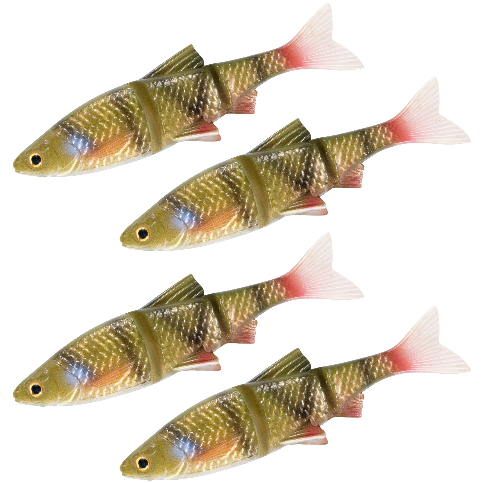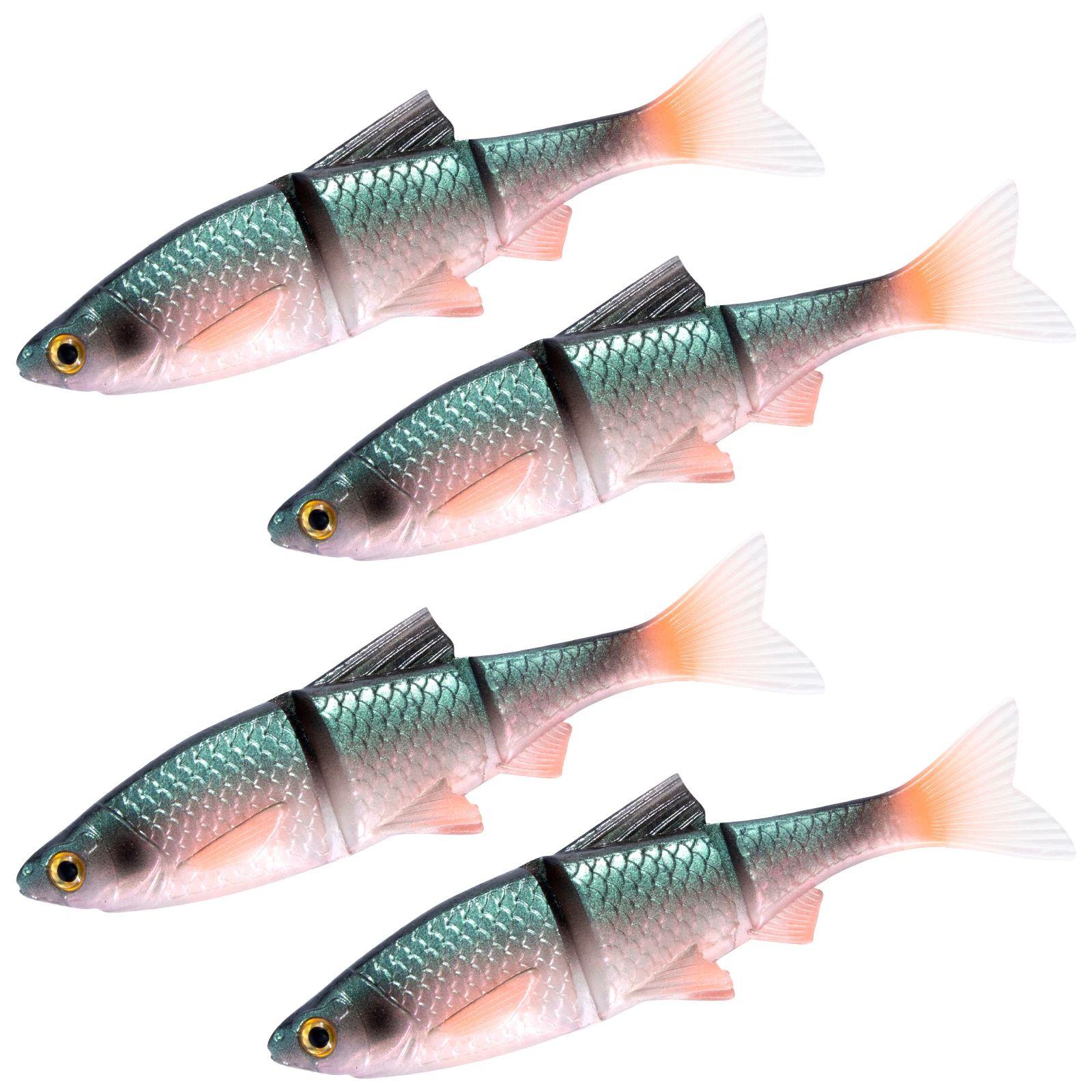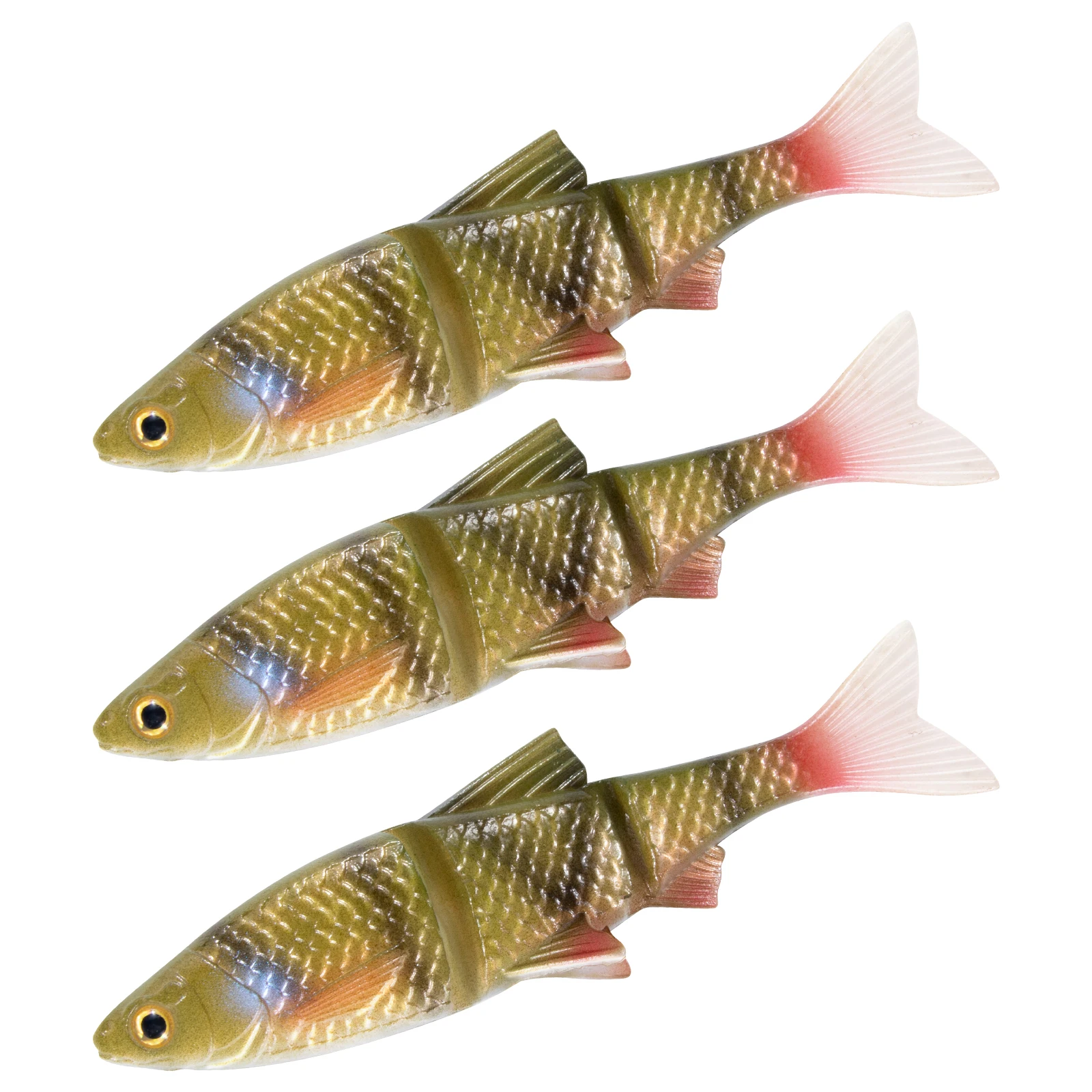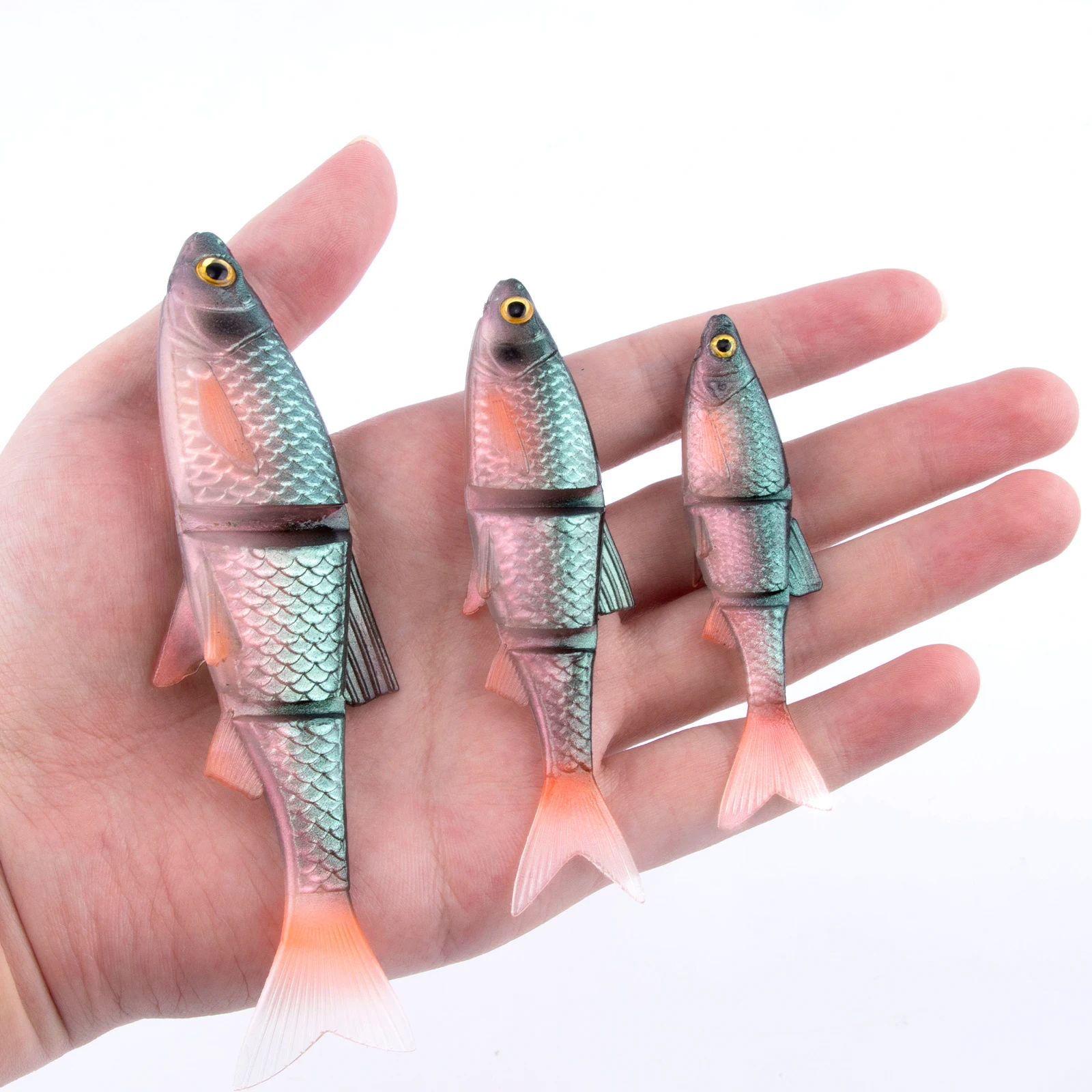 AMPLIA APLICACIÓN: Estos cebos de plástico blando se pueden utilizar para capturar una variedad de peces, incluidos lubina, lucioperca, lucio y trucha.Este swimbait es muy adecuado tanto para agua salada como para agua dulce y funciona bien en todas las capas de agua.También se puede utilizar con Carolina Rigs, Texas Rigs y Drop Shot Rigs.
