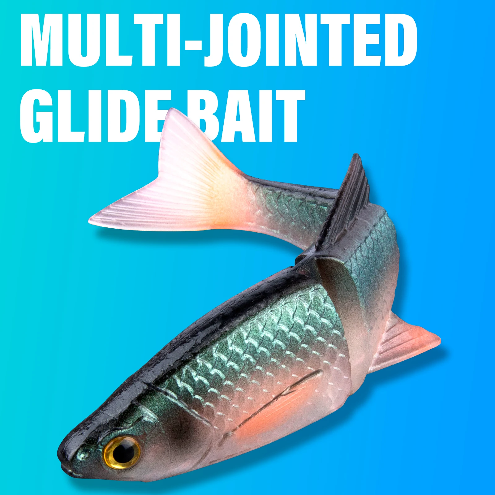 BAÑOS MÚLTIPLES ARTICULACIONES: El Glide Bait tiene un diseño multiarticulado que ofrece un swing flexible y fuerte, creando una acción de natación natural en el agua.Imita en gran medida el movimiento de natación de peces reales lesionados o escapados cuando se recuperan.Esto los hace atraer más capturas y provocar que los peces depredadores huelan.