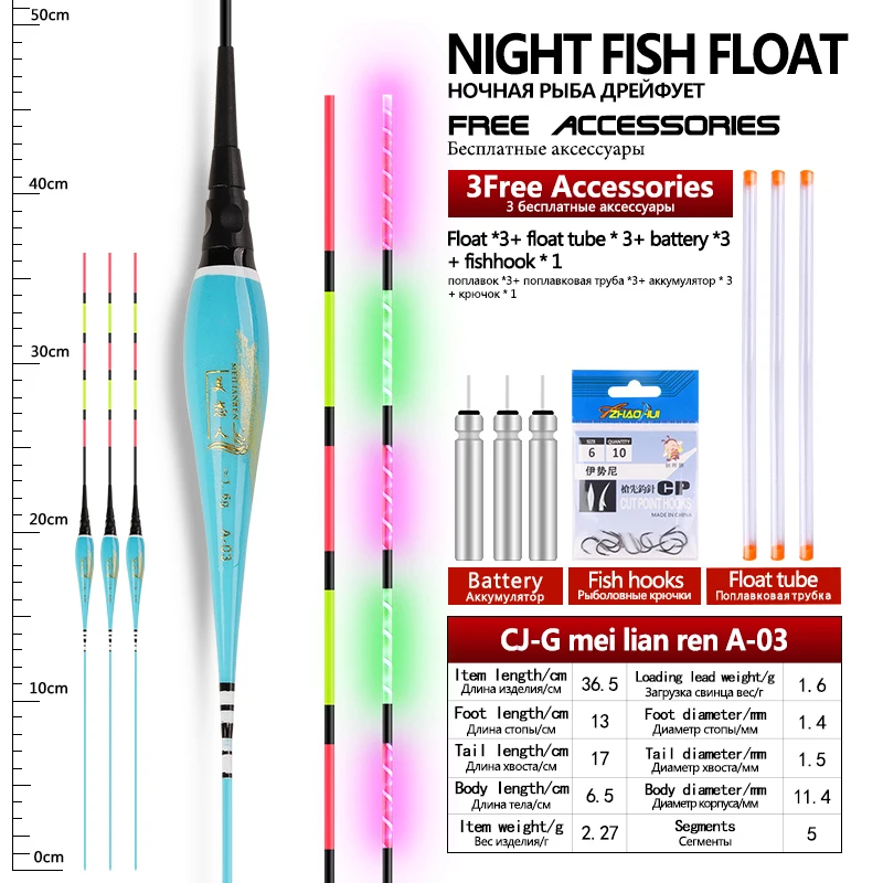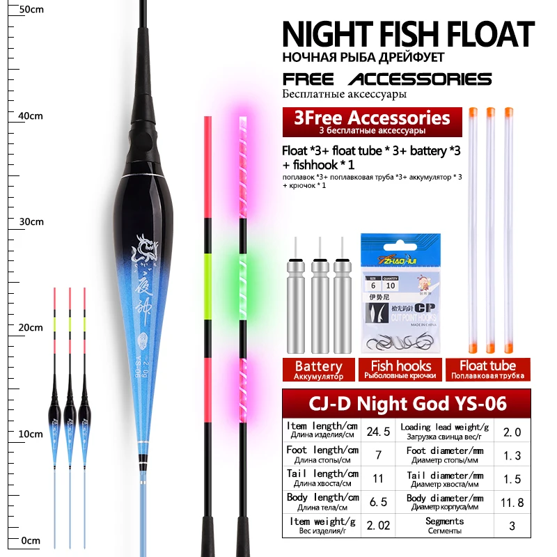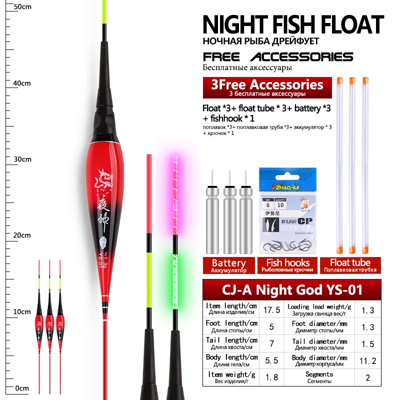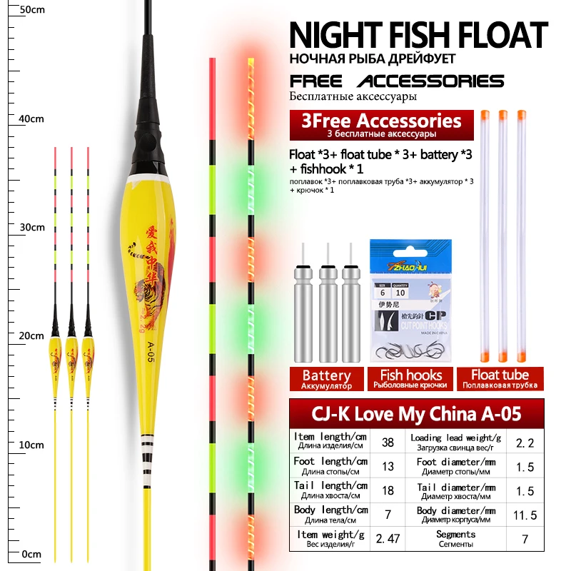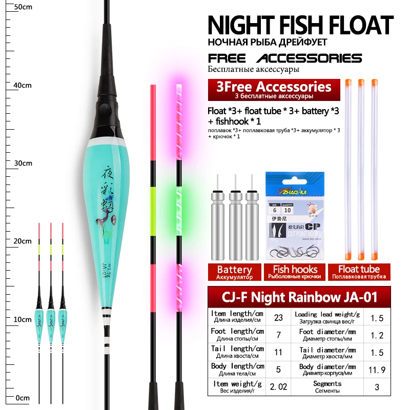 3 flotadores de pesca + 3 tubos + 3CR425 + 1 anzuelos de bolsa flotadores eléctricos Nano compuestos flotador luminoso accesorios de aparejos de pesca de agua dulce