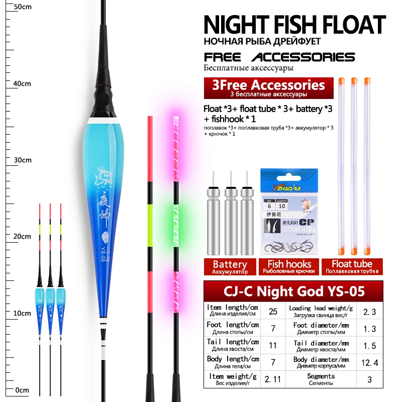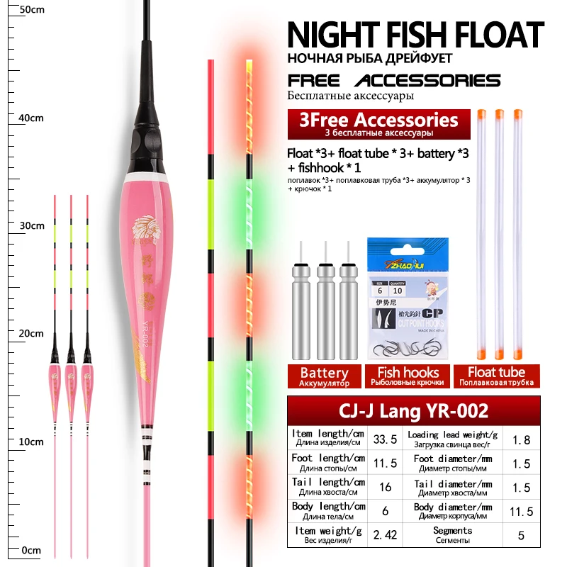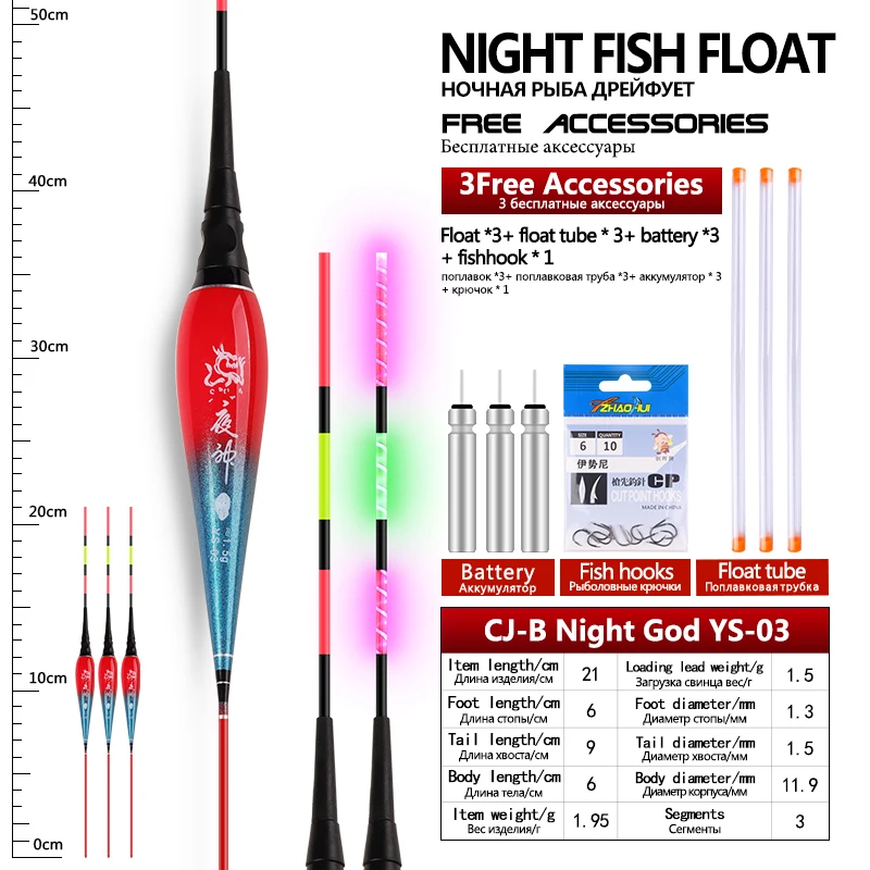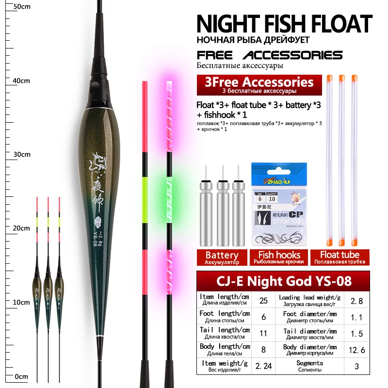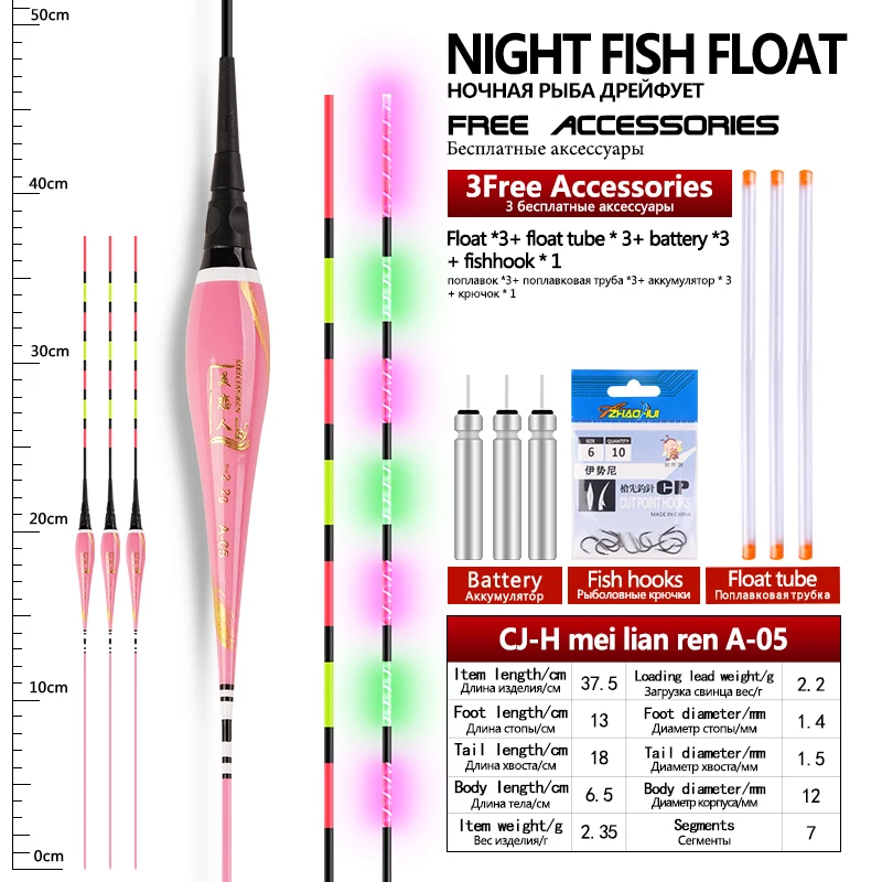 3 flotadores de pesca + 3 tubos + 3CR425 + 1 anzuelos de bolsa flotadores eléctricos Nano compuestos flotador luminoso accesorios de aparejos de pesca de agua dulce
