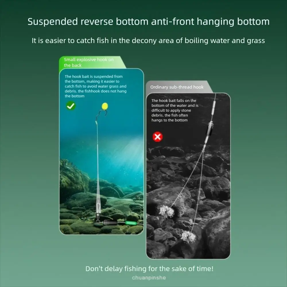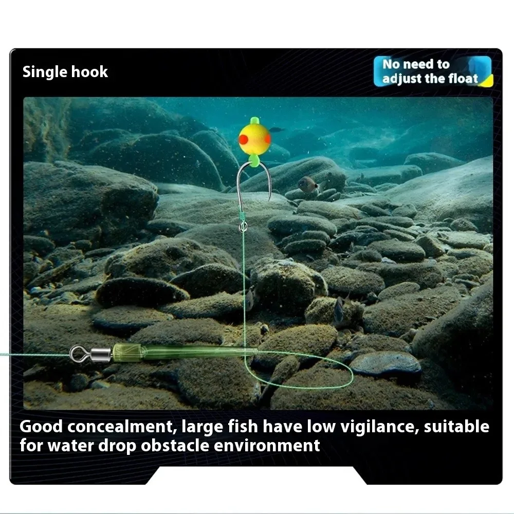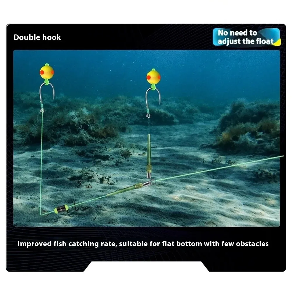3. Functional : with anti-bottom-hanging function, designed for complex underwater environment, reducing the problem of line tangling and hooking; double hooks layout to enhance the probability of catching fish, and barbed hooks to enhance the catching power when stabbing and walking fish, reducing the risk of running fish.