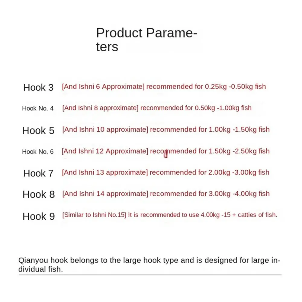 2.Especificación: Contiene 5 piezas de juegos de hilos con tamaños de gancho que van desde 4# - 13#, que puede satisfacer las necesidades de tamaños de anzuelos y tipos de anzuelos para pescar diferentes tamaños de peces grandes, y los juegos de hilos se combinan con las especificaciones correspondientes de accesorios, que son adecuados para una variedad de escenarios de pesca.
