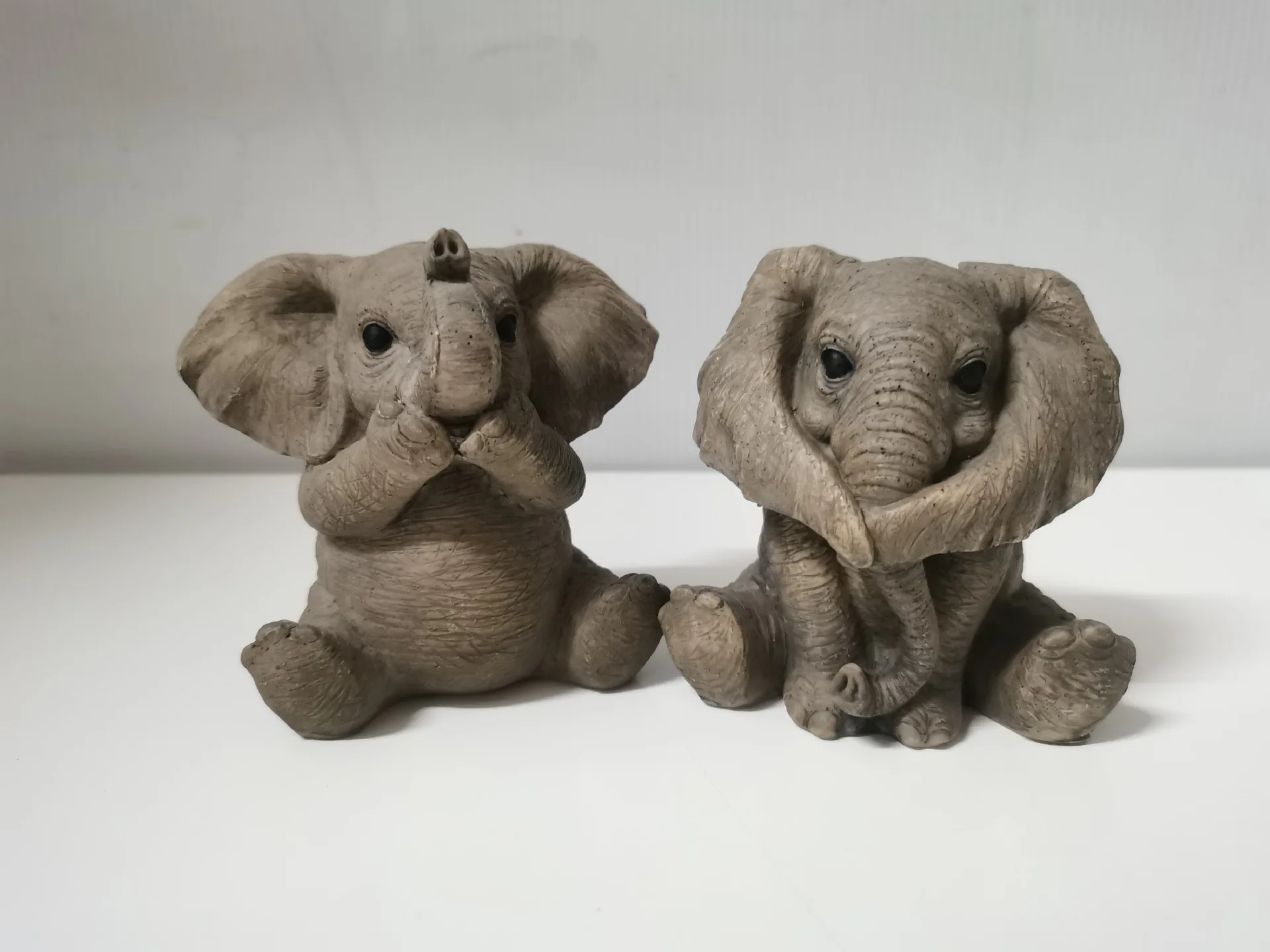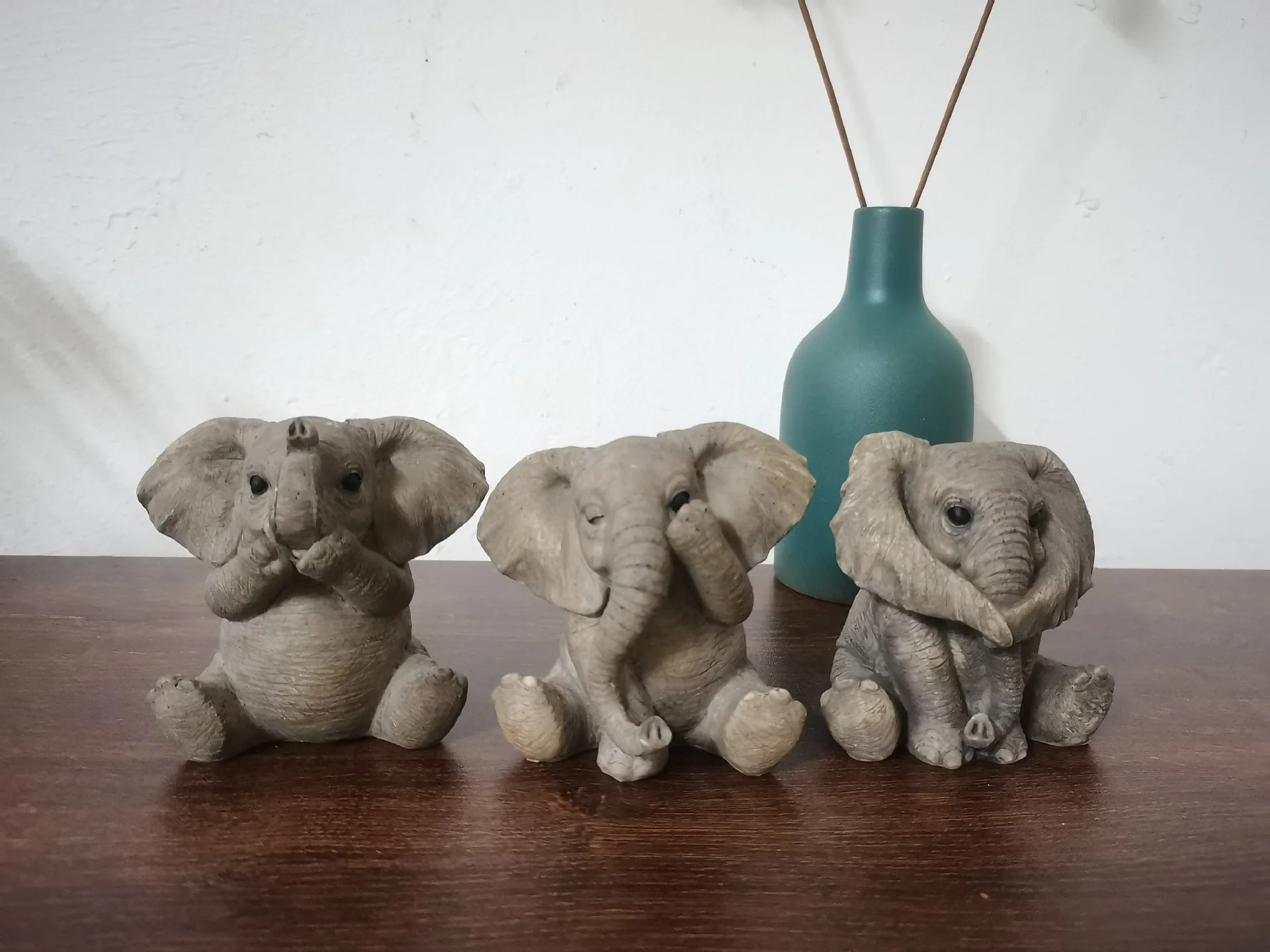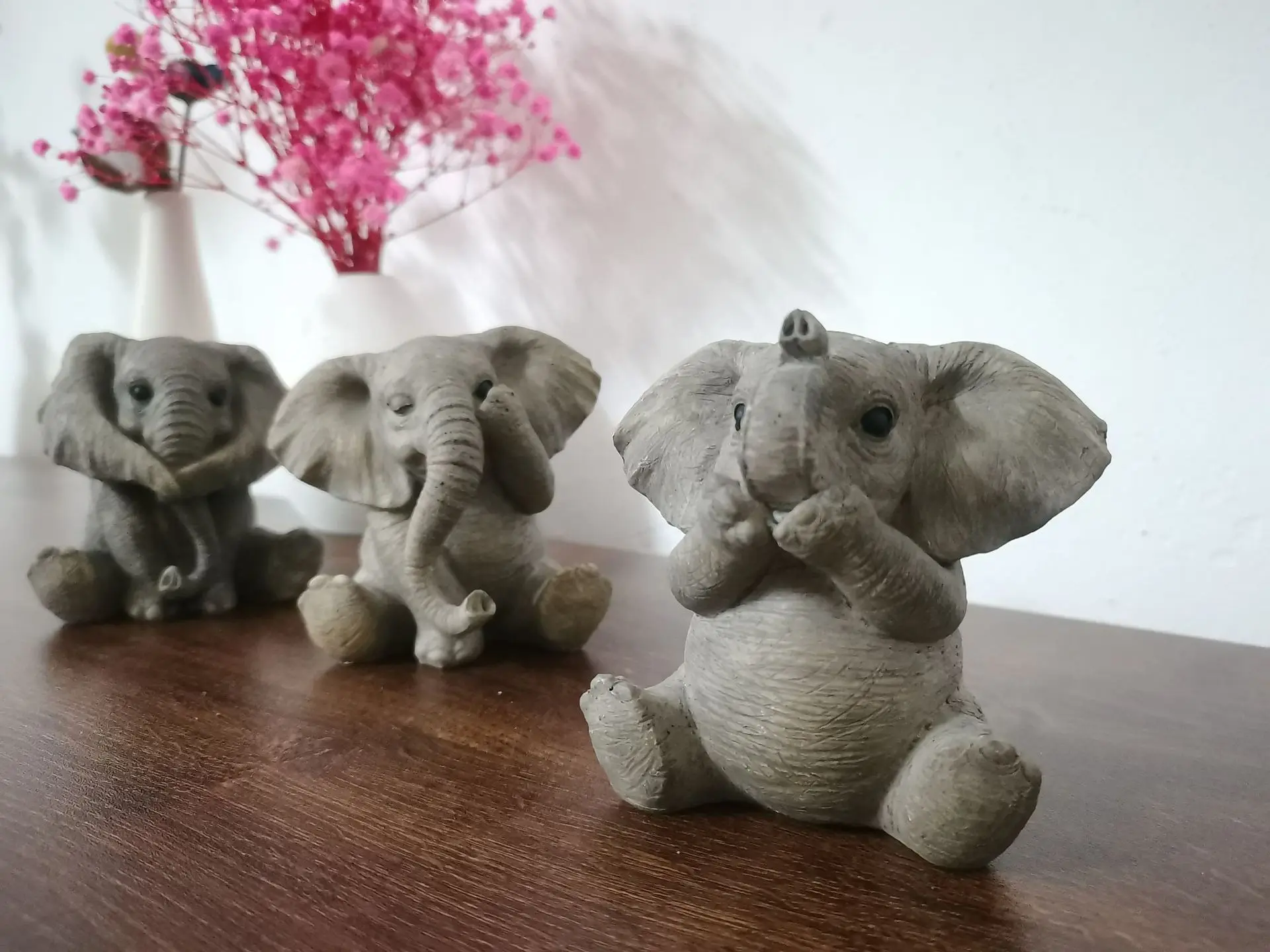 3 tipos de decoración de elefante pequeño, figuras de elefante gris Feng Shui de la suerte, creatividad de resina, muñeco de elefante bonito juguetón