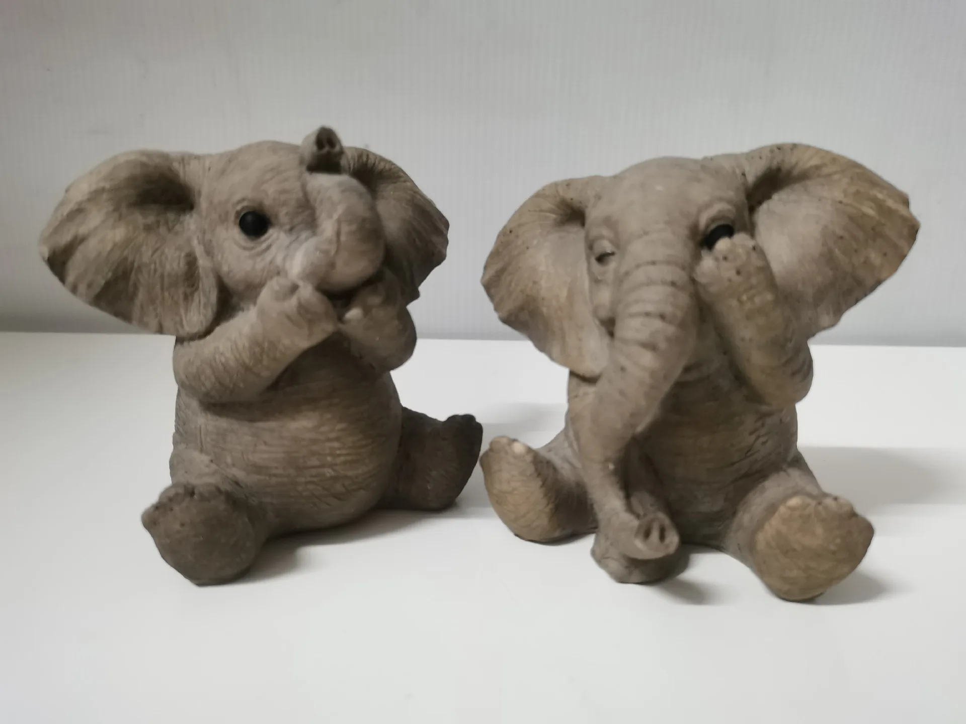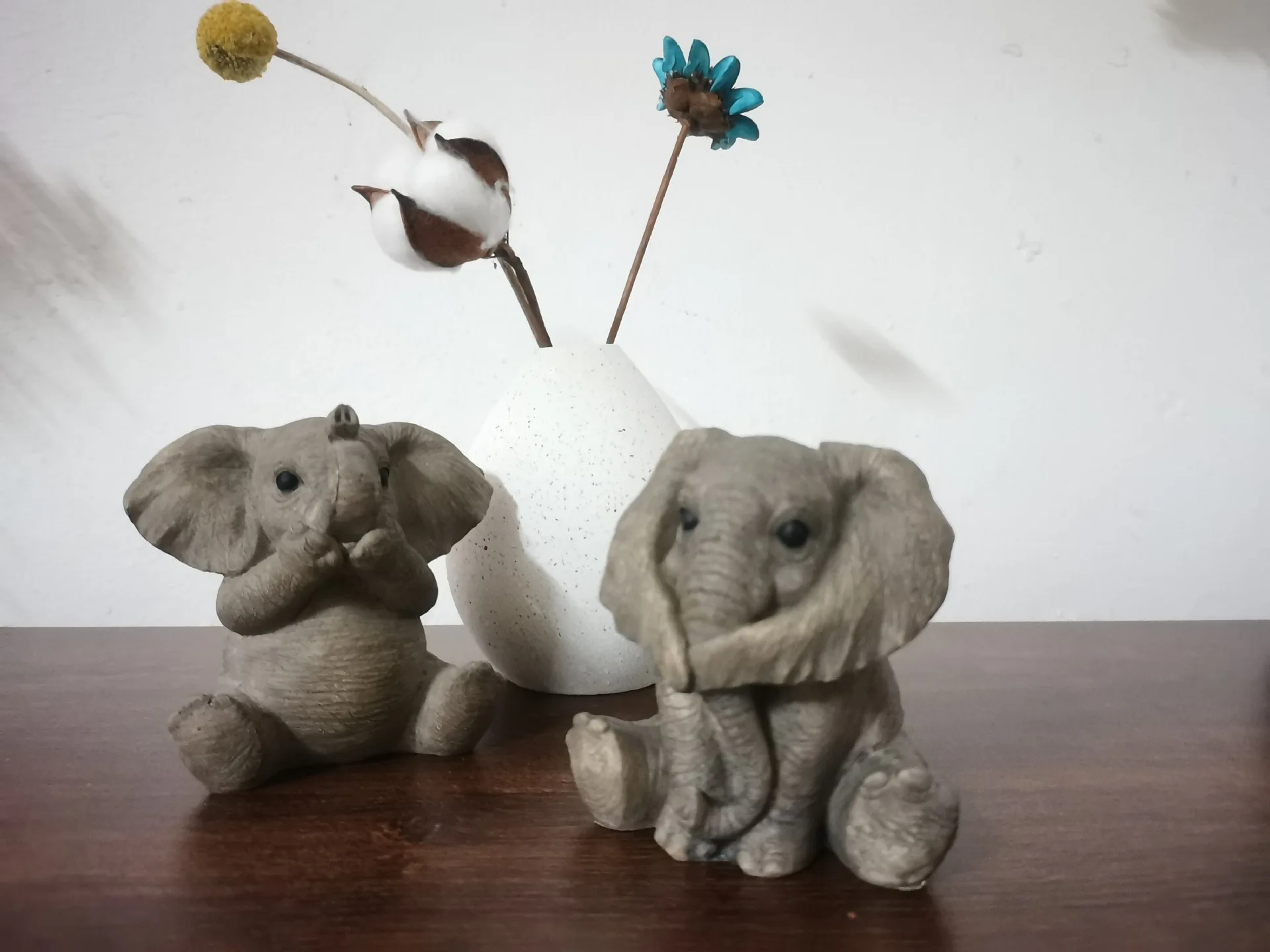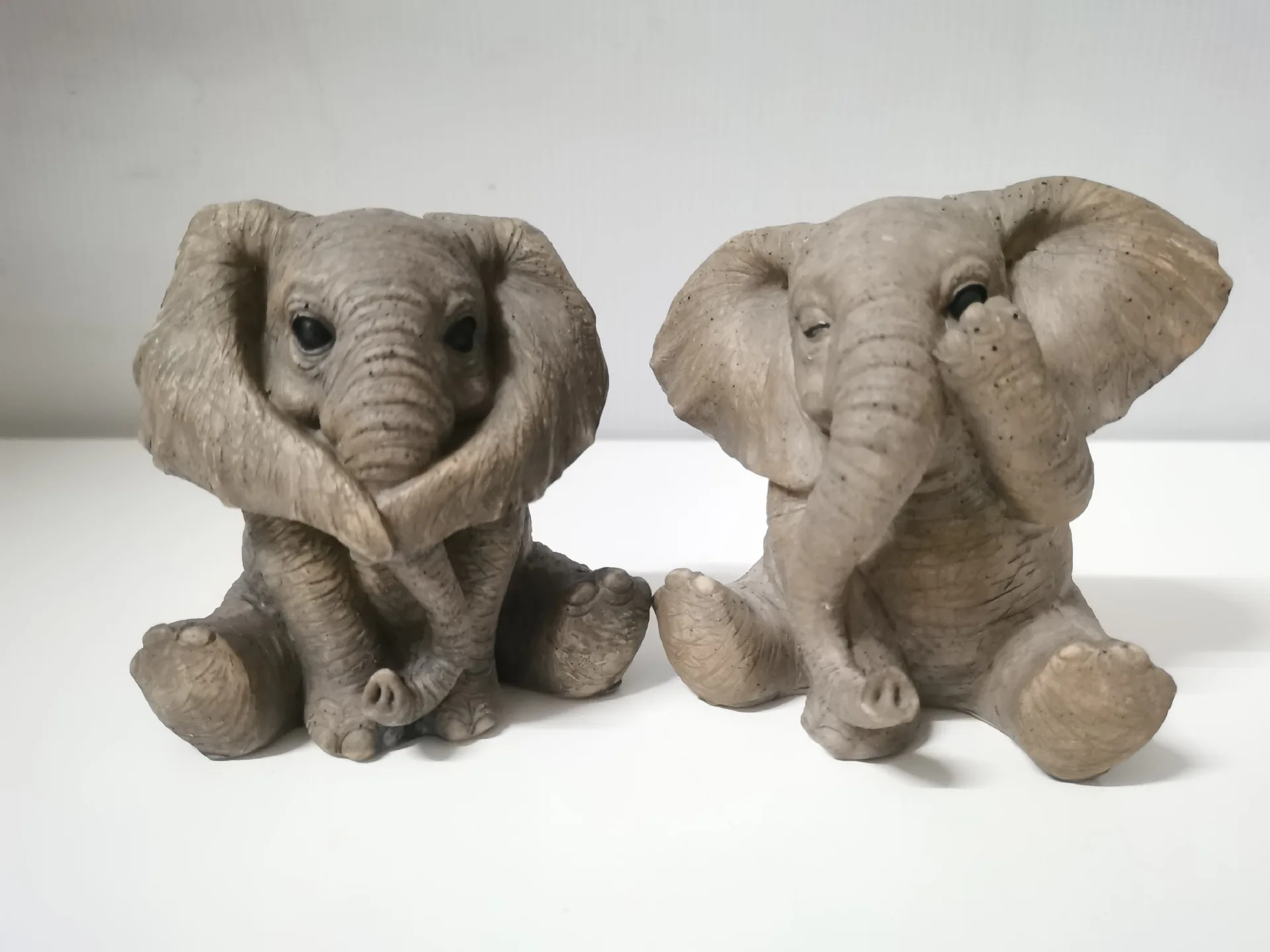 3 tipos de decoración de elefante pequeño, figuras de elefante gris Feng Shui de la suerte, creatividad de resina, muñeco de elefante bonito juguetón